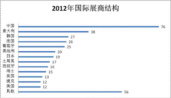 l 2012年展商数量:共计来自35个国家的1086位展商