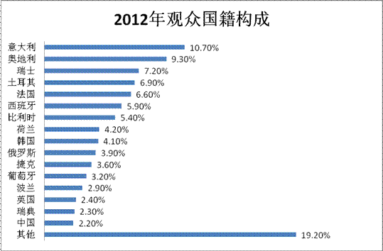 l 2012年观众数量:共计来自92个国家的55965位观众