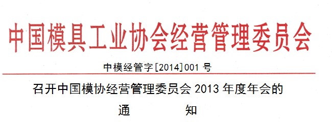 中国模具工业协会经营管理委员会2013年度年会,兹定于2014年3月24日(星期一)~26日,在湖北省武汉市荷田大酒店召开,会议得到湖北模具行业协会和武汉市模协的全力支持和配合。