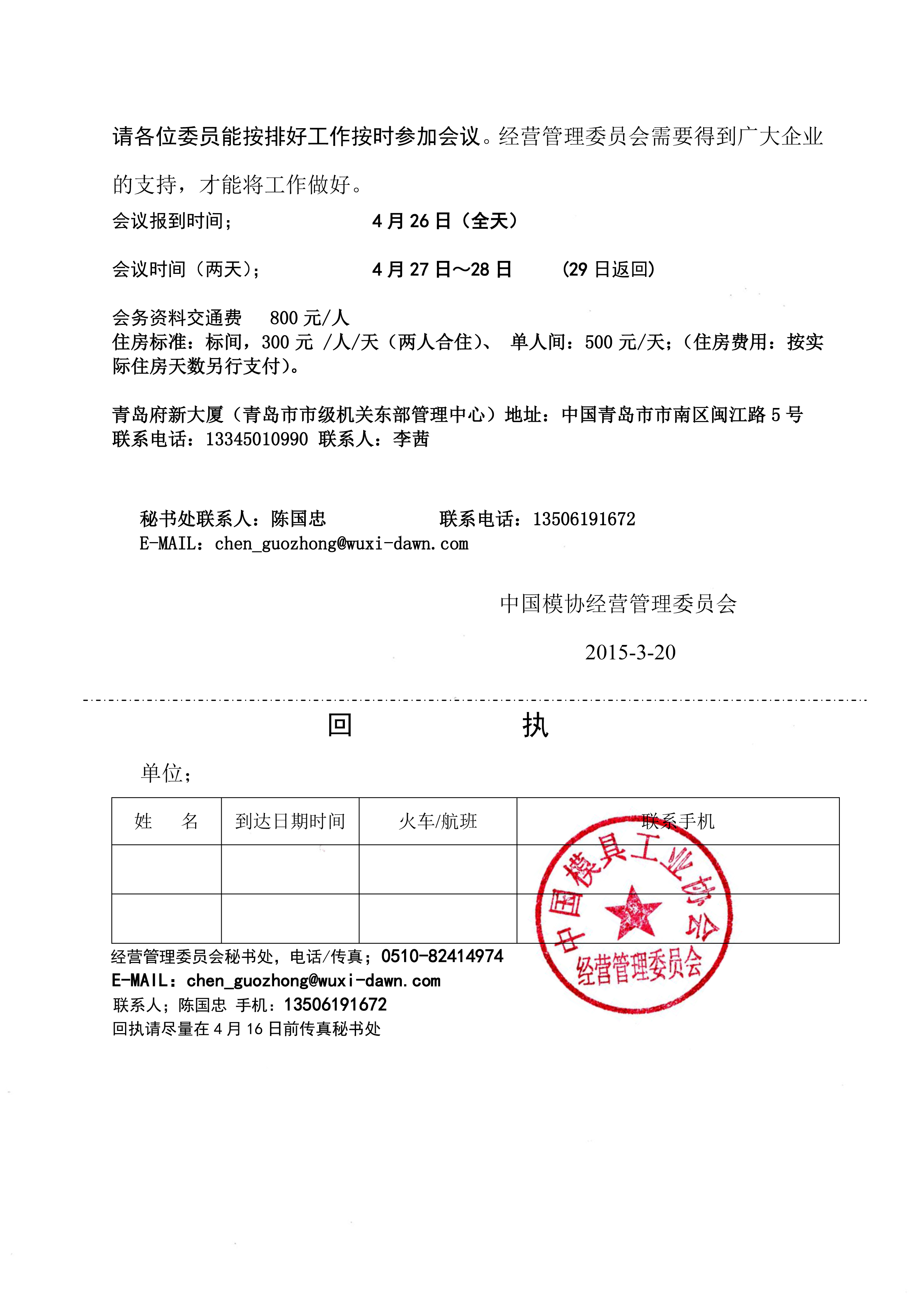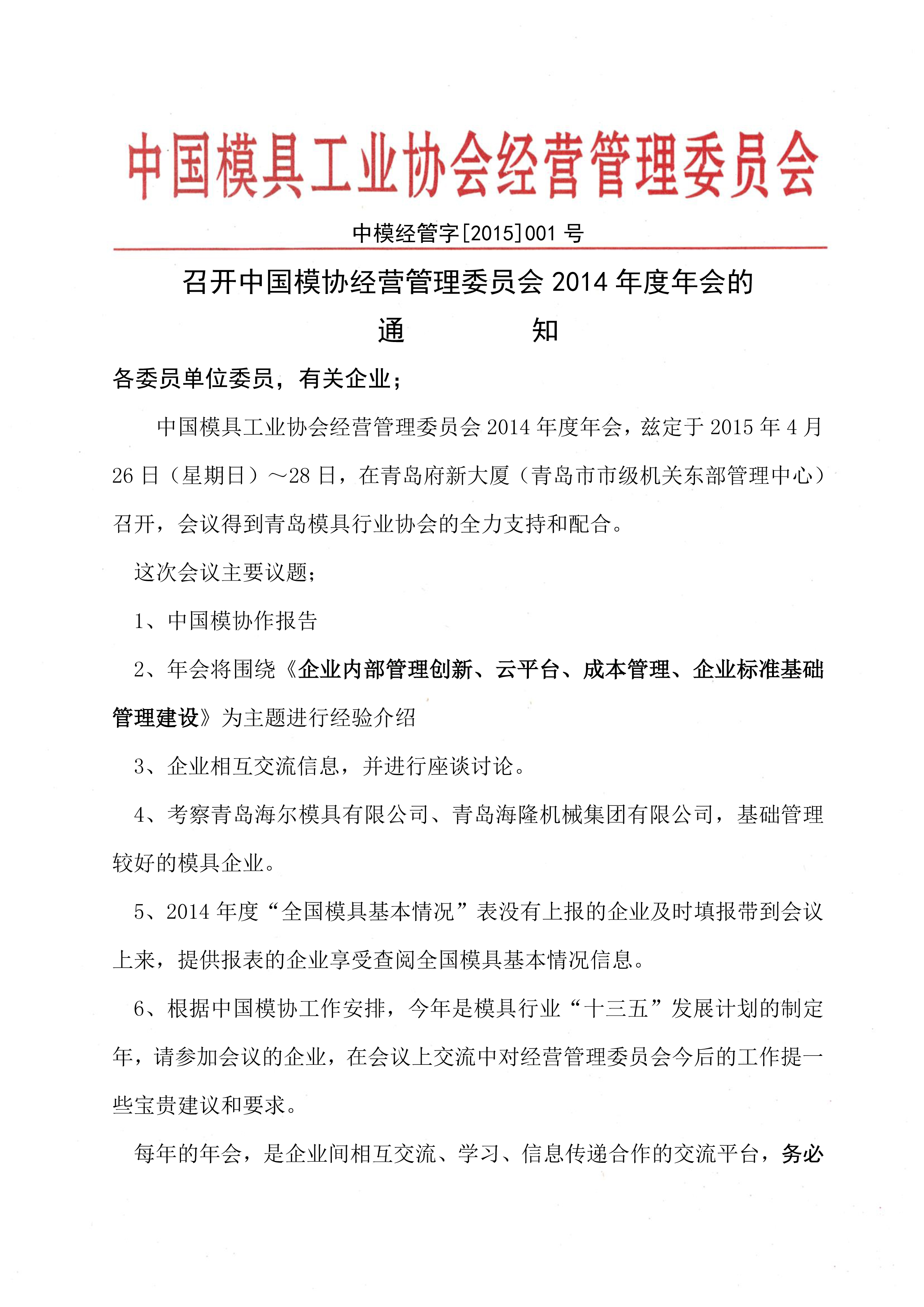 召开中国模协经营管理委员会2014年度年会的通知