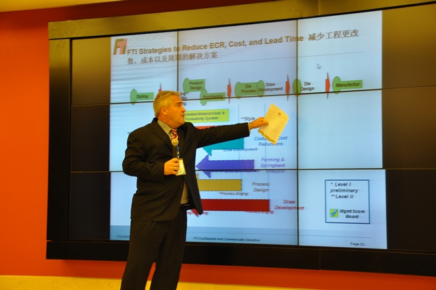 工业4.0下汽车模具技术交流和研讨会由汽模委秘书邢忠宪主持,华中科技大学柳玉起教授做了汽车覆盖件智能化设计与成形模拟的技术报告;加拿大FTI公司全球副总裁麦克做了覆盖件工艺工程革新:全球领先的工程和成本策略和解决方案的技术报告;美国ETA公司徐金波经理做了仿真分析中热成形中的应用的技术报告;CAXA数码大方的杨维明副总经理做了模具行业精益研发创新服务平台的技术报告;美国SMIRT WERE INC 公司 Mr. Cosimo Galante工业顾问做了为冲压模具制造量身定制的软件方案的技术报告。来自中国,美国,加拿大的各位专家针对汽车冲压模具的技术、设计、制造、成本控制、等一系列问题的解决方案,以及精益研发创新平台等精彩精辟的演讲,使大家受益匪浅,实时掌握国际汽车模具技术的新动态、新观念、新方法、新思维、新技术。