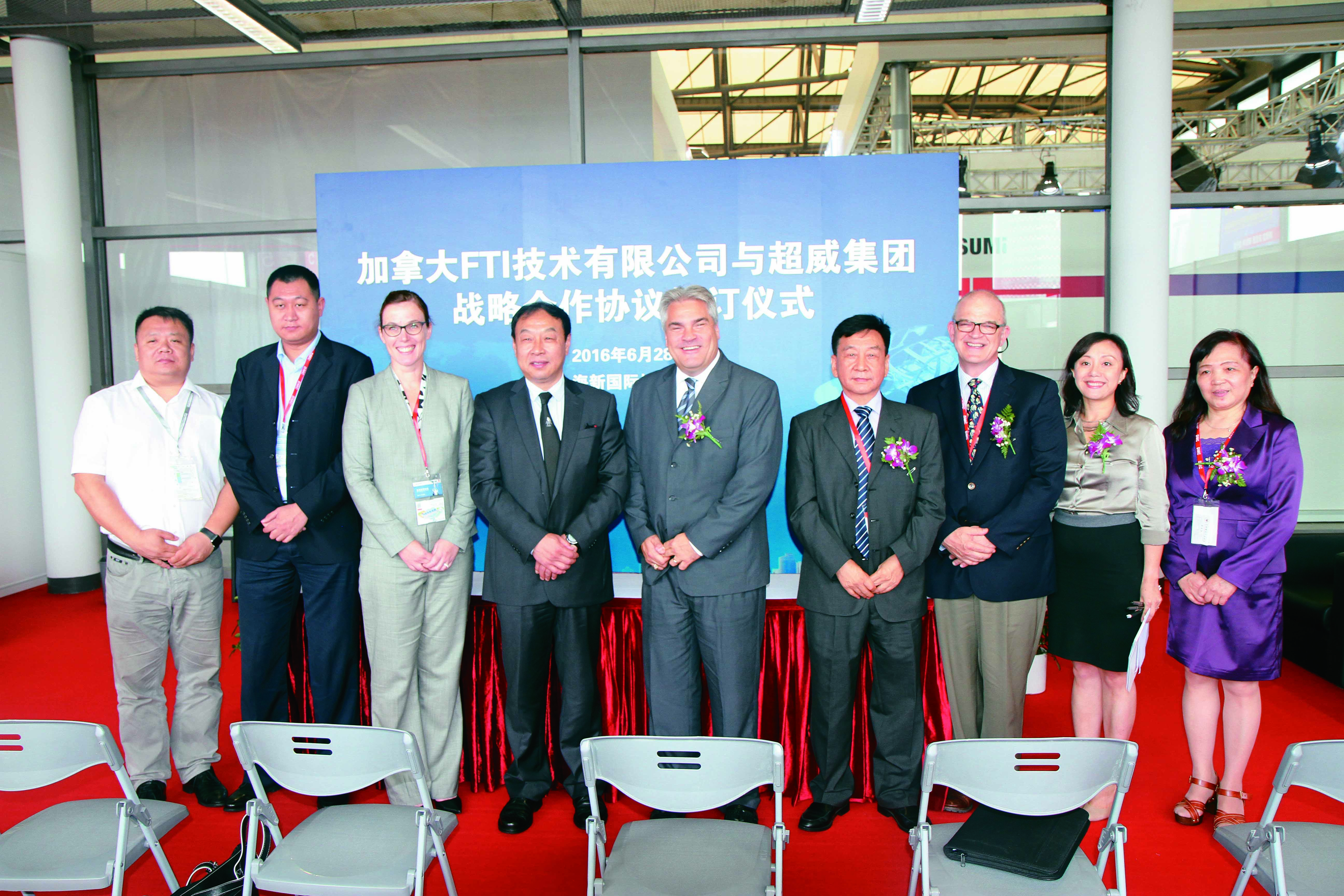 2016 年6 月28 日,DMC2016 展会拉开了序幕,在此次展会上加拿大F T I 技术有限公司与超威集团签订战略合作协议,中国模具工业协会常务副会长兼秘书长武兵书先生、中国模具工业协会副秘书长李玉华女生、浙江普朗特电动汽车有限公司C EO 王国富先生、加拿大F T I 技术有限公司CEO Michael Gallagher 先生、加拿大驻上海领事兼商务专员Katrin Spence 女士出席了本次签约仪式。