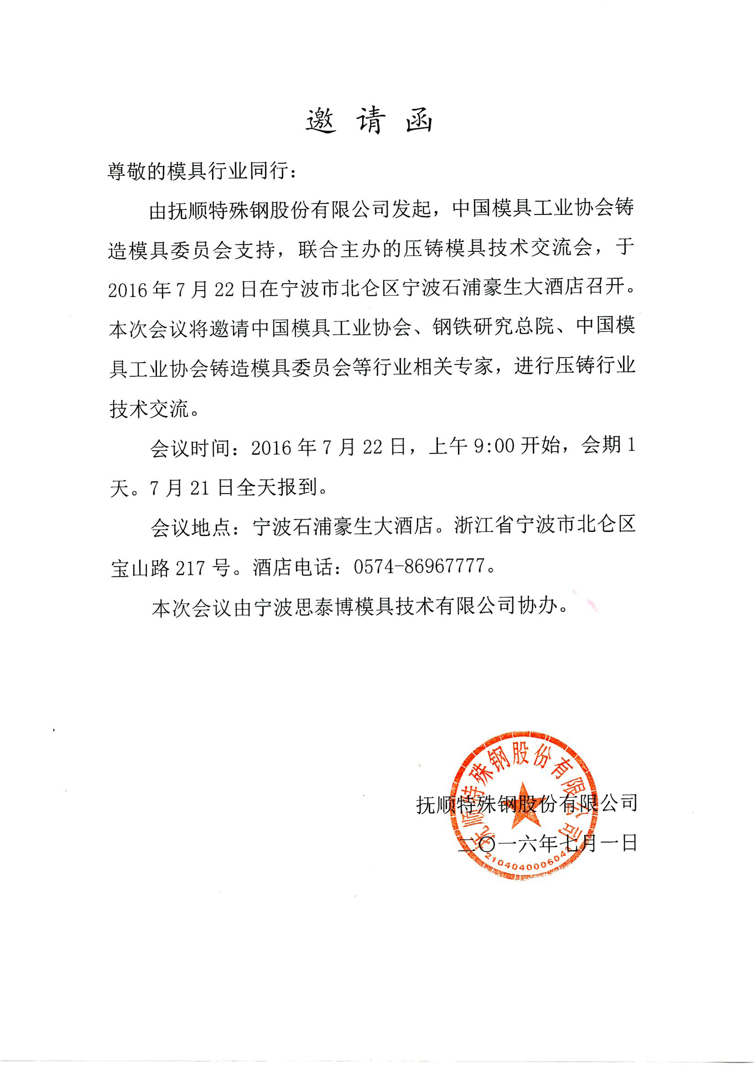 压铸模具技术交流会邀请函