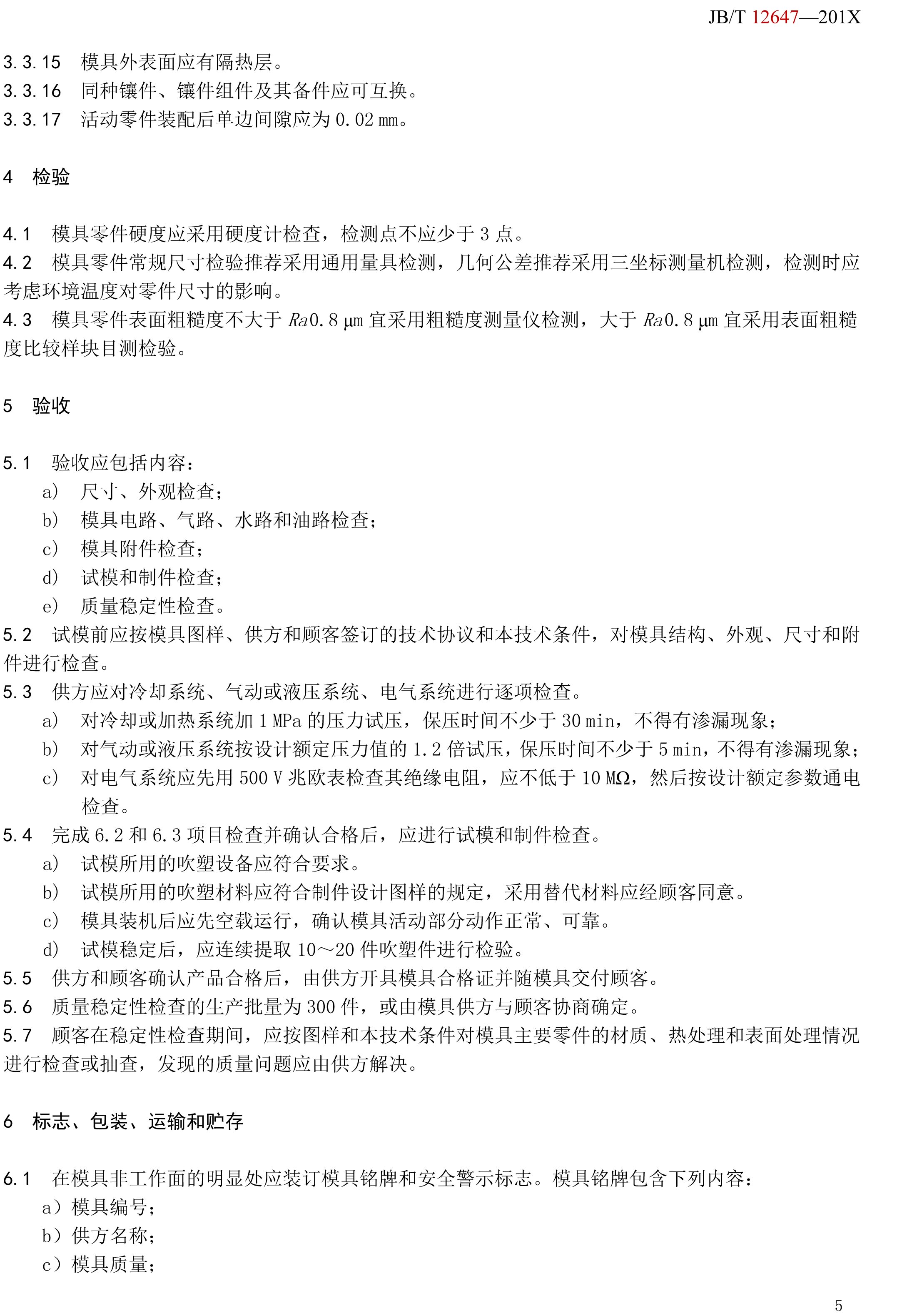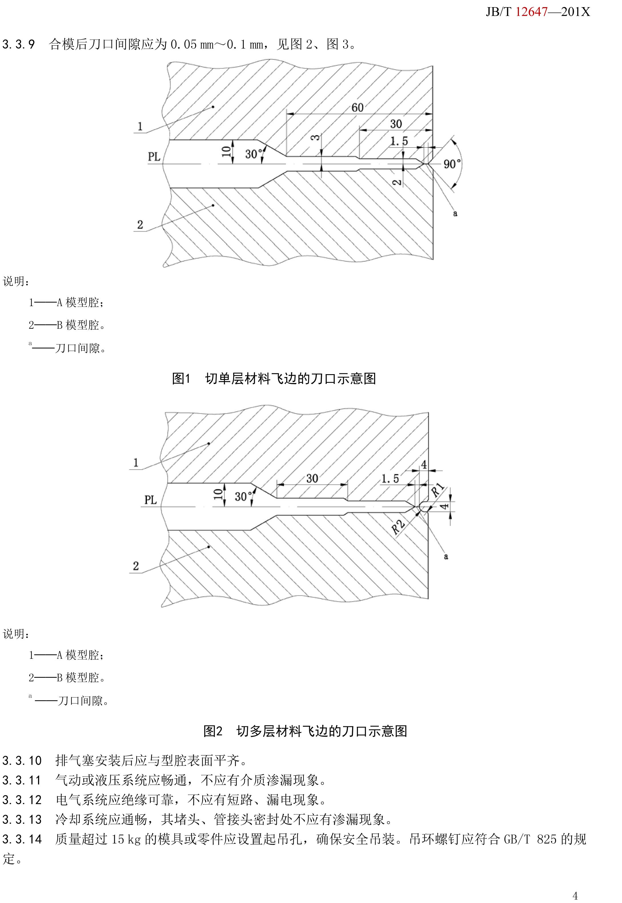 国家标准和行业标准包涵以十大类模具为模具标准主体对象,含概了术语、技术条件、模架、模具零件、结构形式、实验方法、技术验收条件、安全等其它条件等等以及模具质量相关基础标准。“十二五”期间符合模具技术与市场的发展,具有创新性的产业模具标准也在行业标准中占有重要地位。