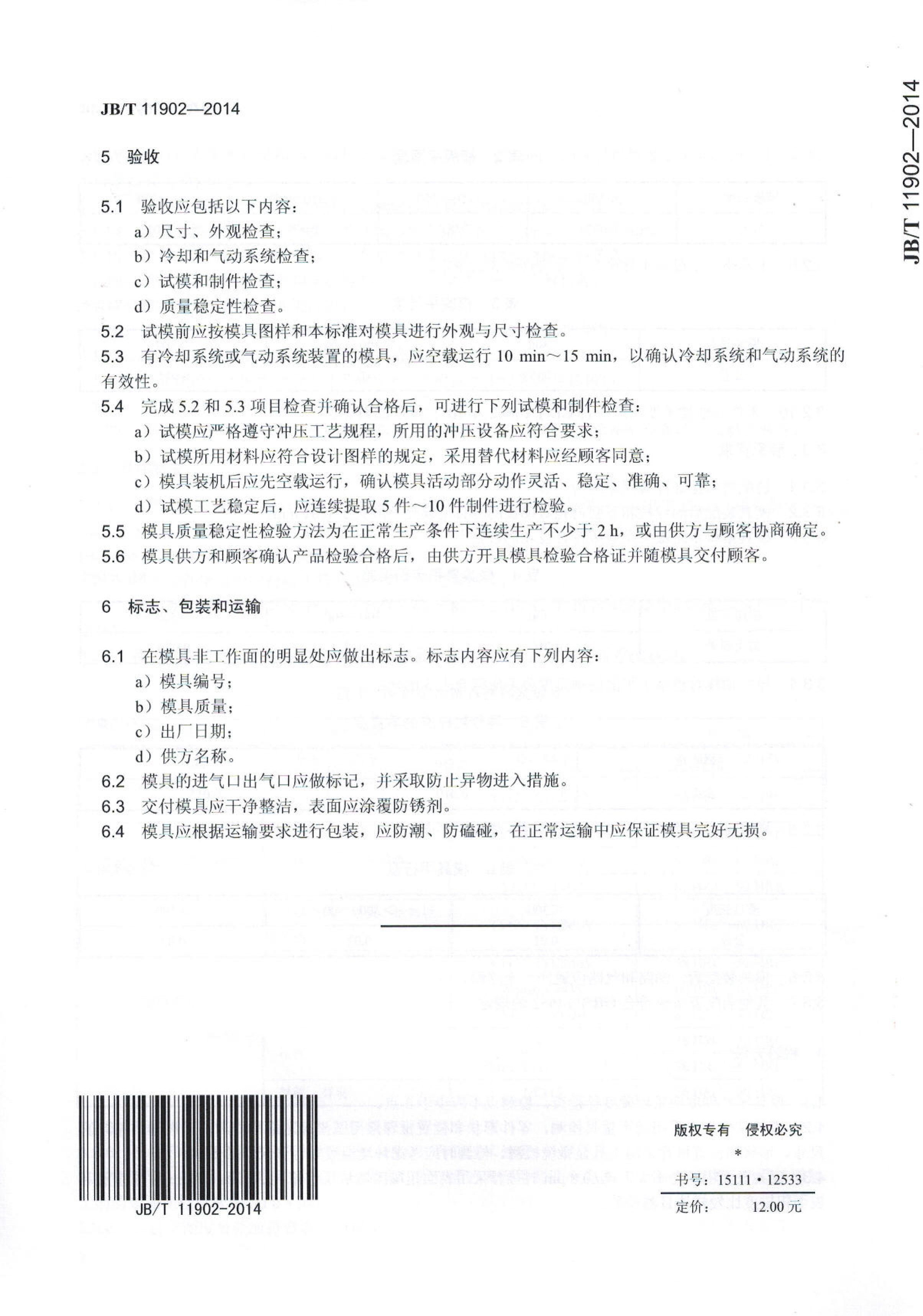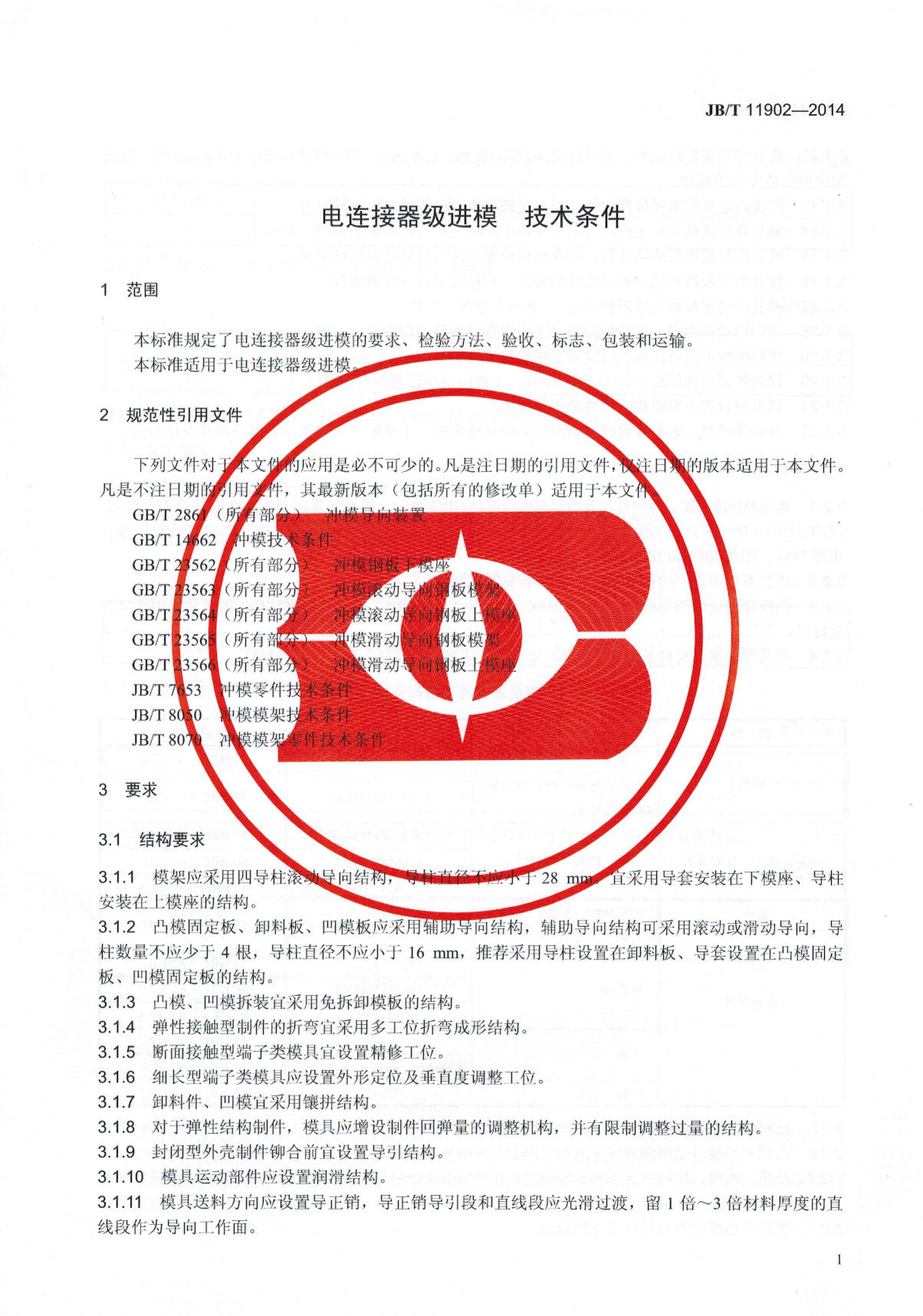 国家标准和行业标准包涵以十大类模具为模具标准主体对象,含概了术语、技术条件、模架、模具零件、结构形式、实验方法、技术验收条件、安全等其它条件等等以及模具质量相关基础标准。“十二五”期间符合模具技术与市场的发展,具有创新性的产业模具标准也在行业标准中占有重要地位。