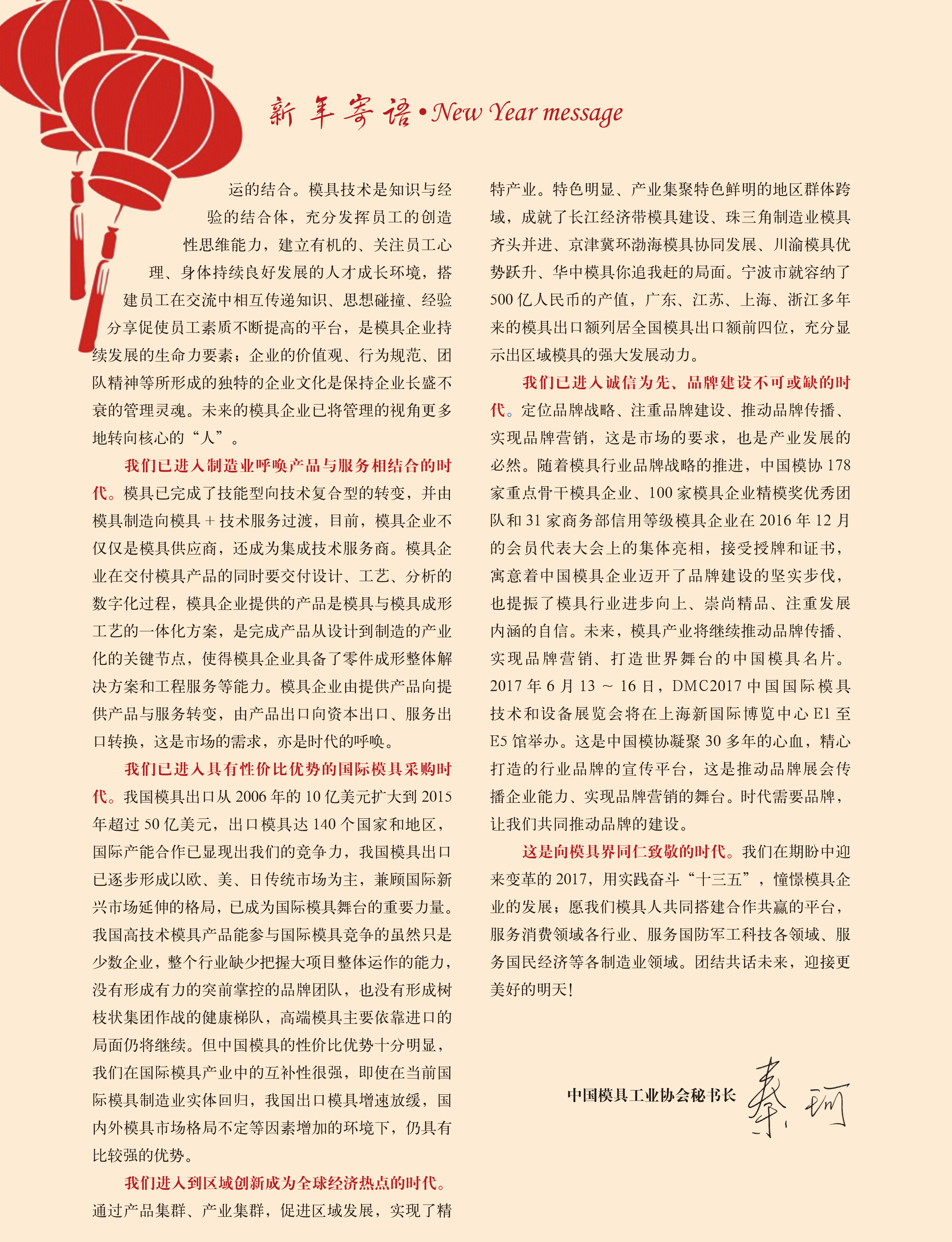 ——中国模具工业协会秘书长2017新春致词