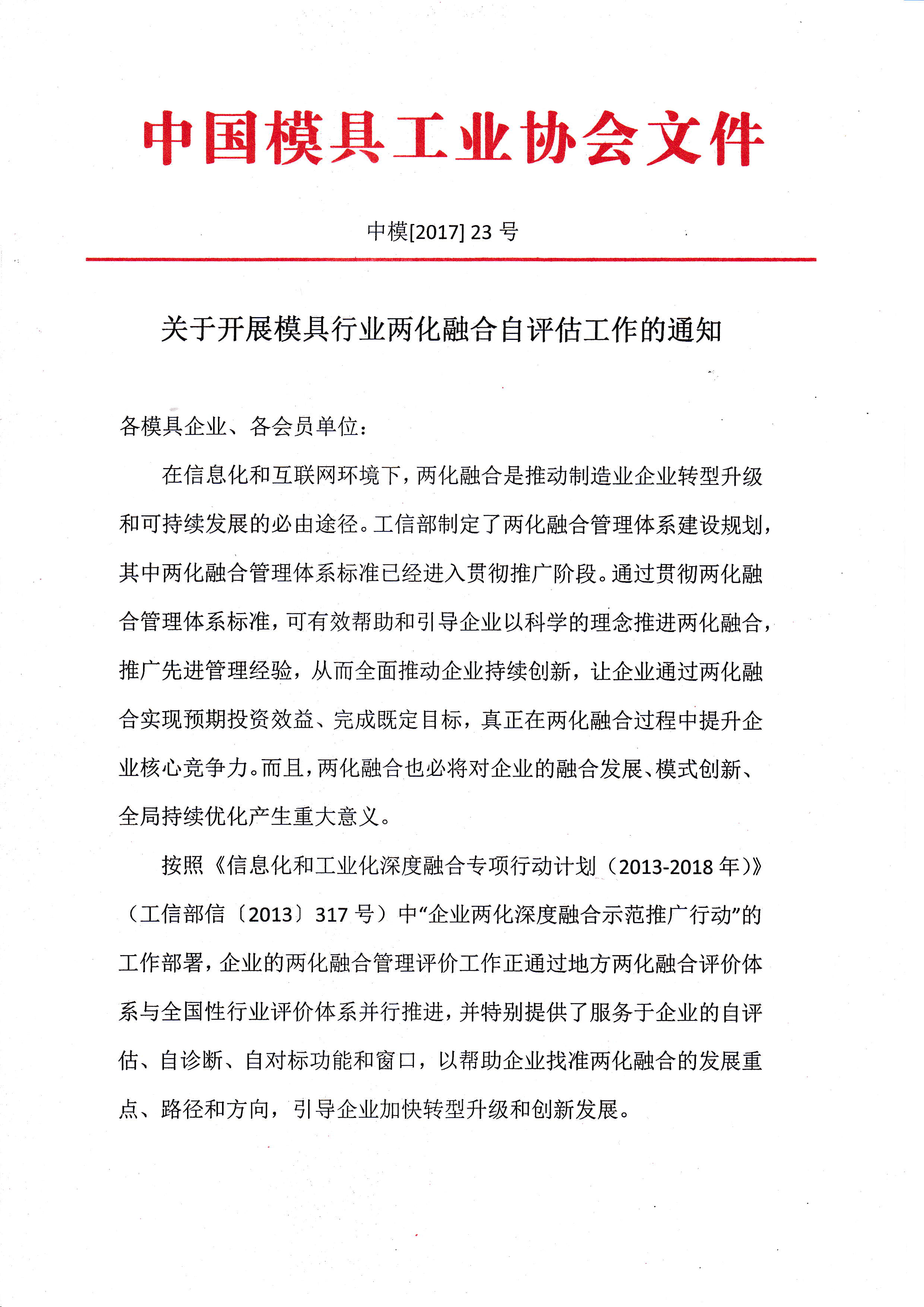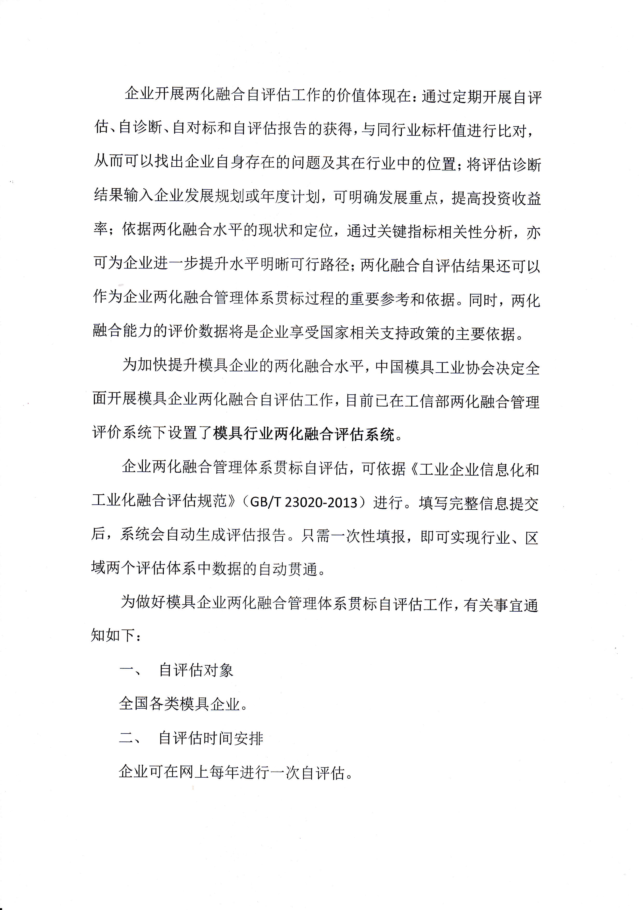 关于开展模具行业两化融合自评估工作的通知