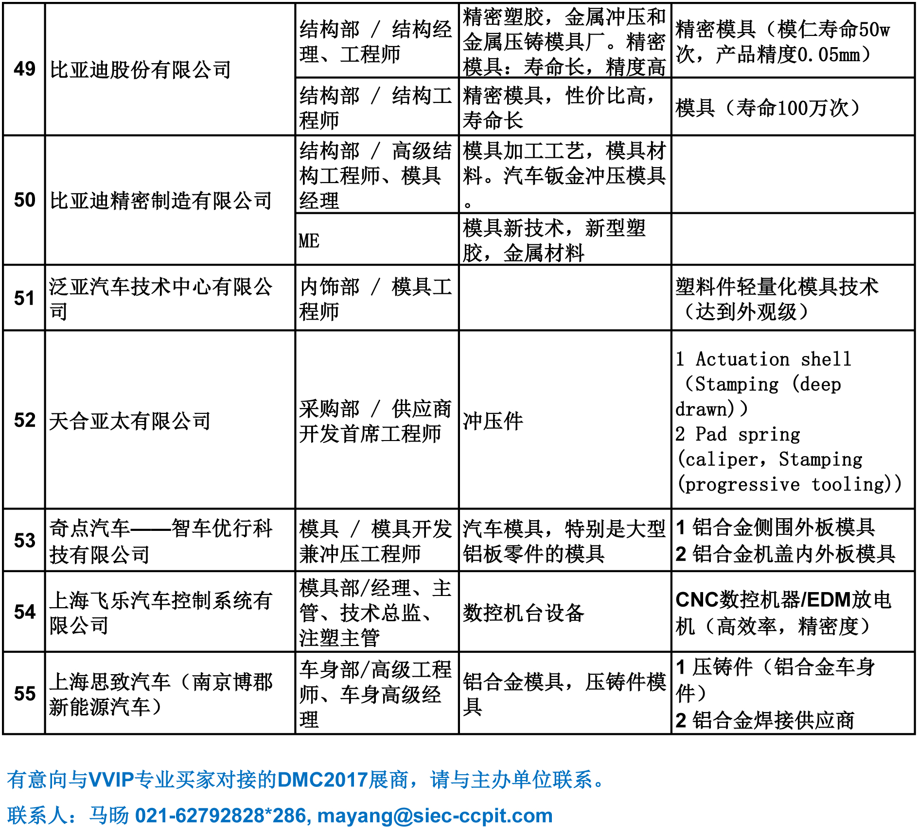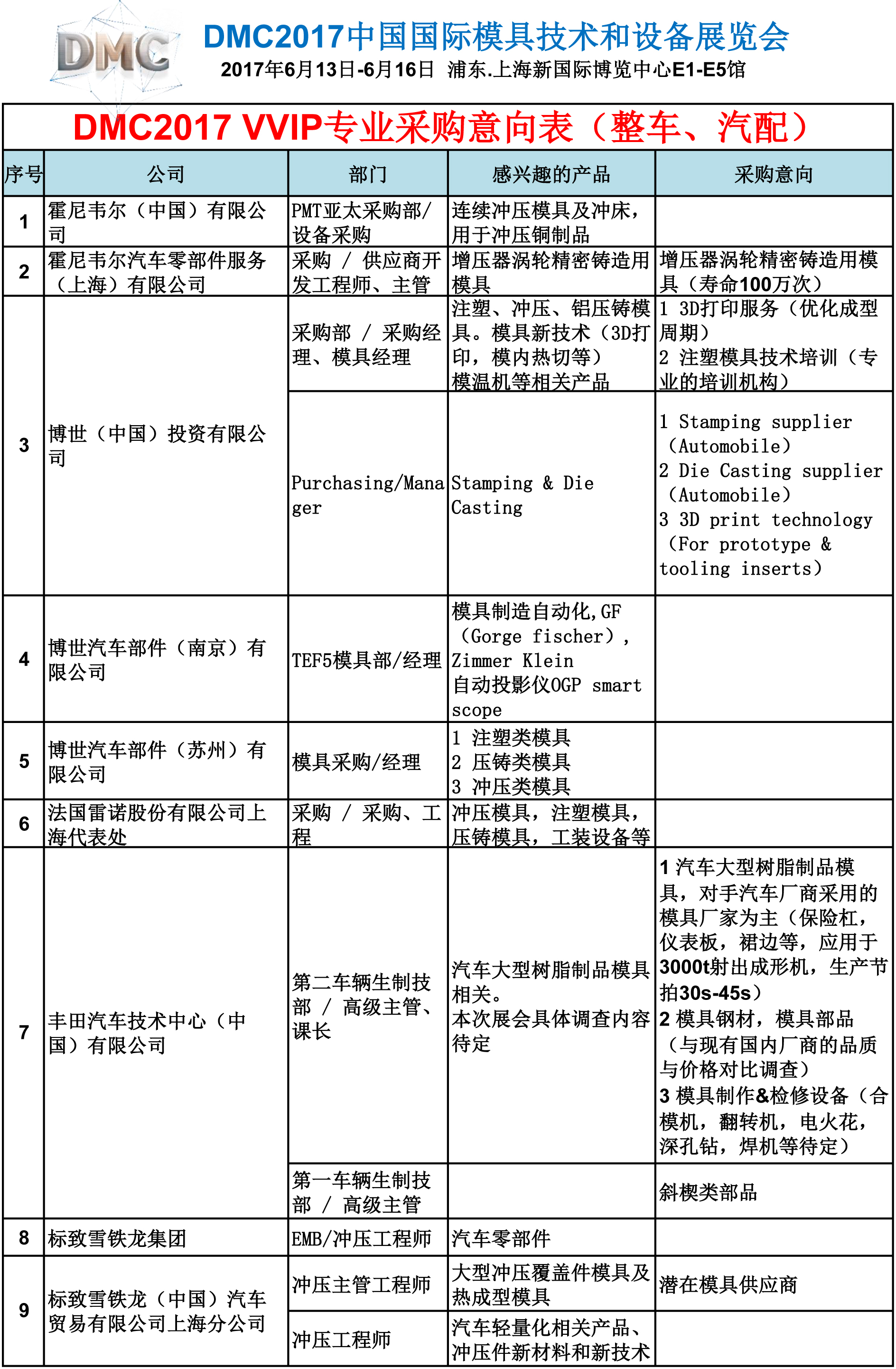DMC2017 VVIP专业采购意向表(整车、汽配)