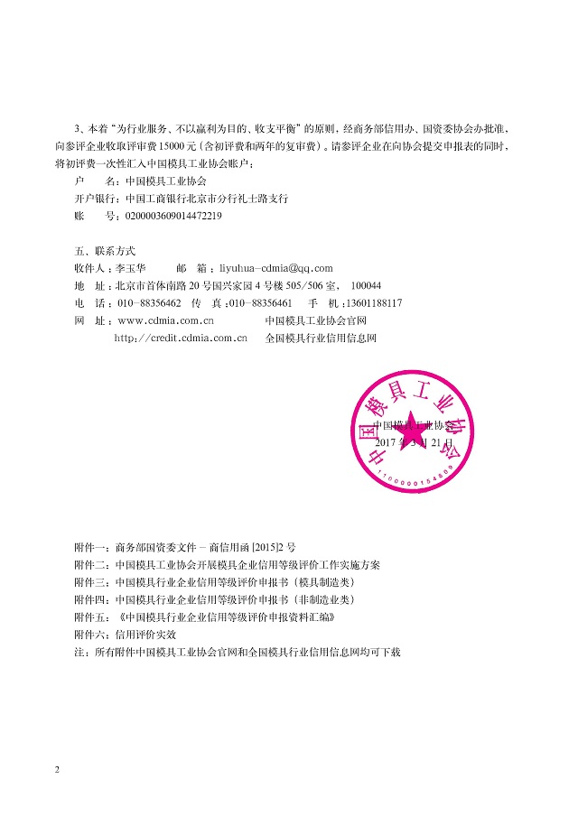 附件二:中国模具工业协会开展模具企业信用等级评价工作实施方案.pdf