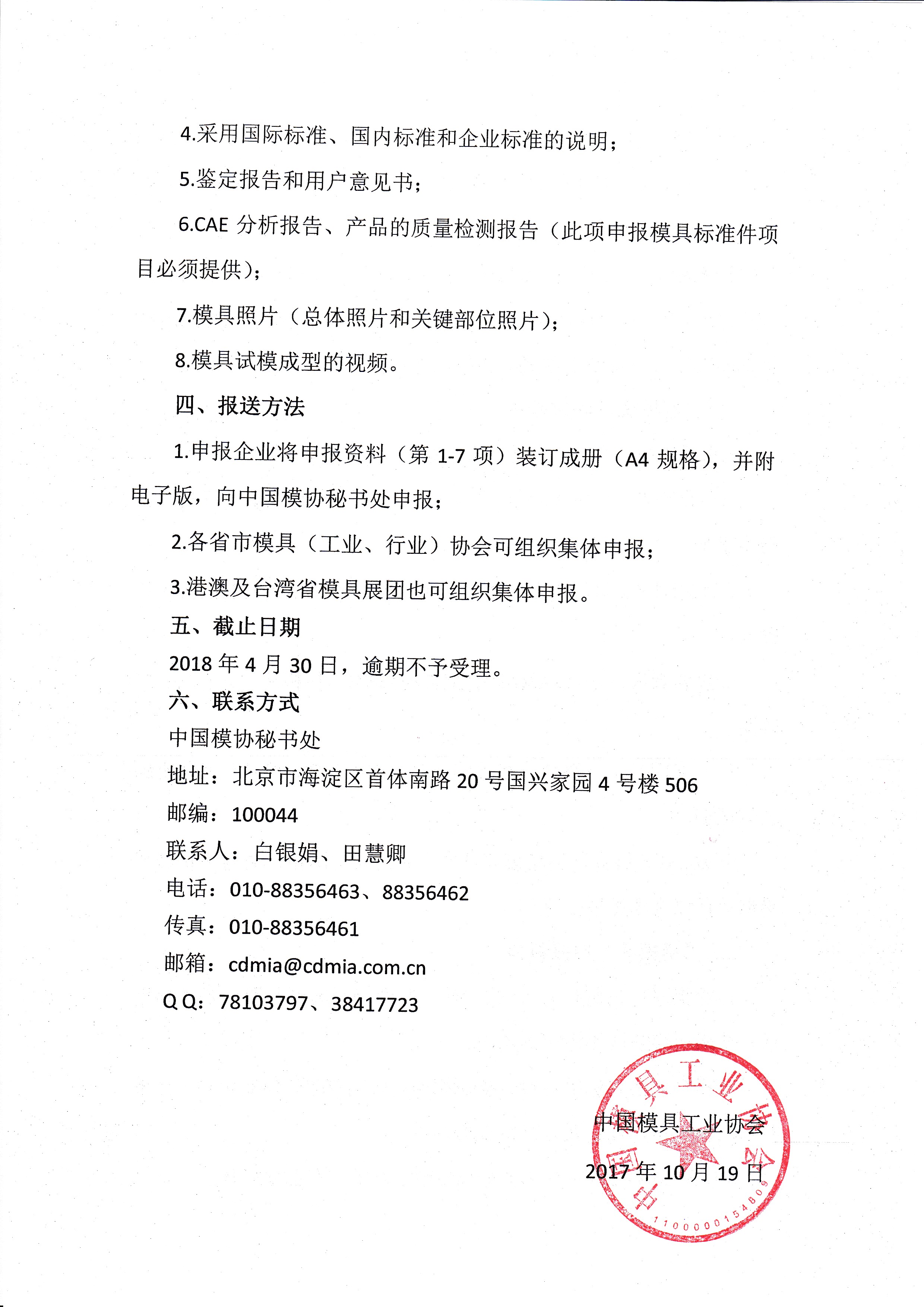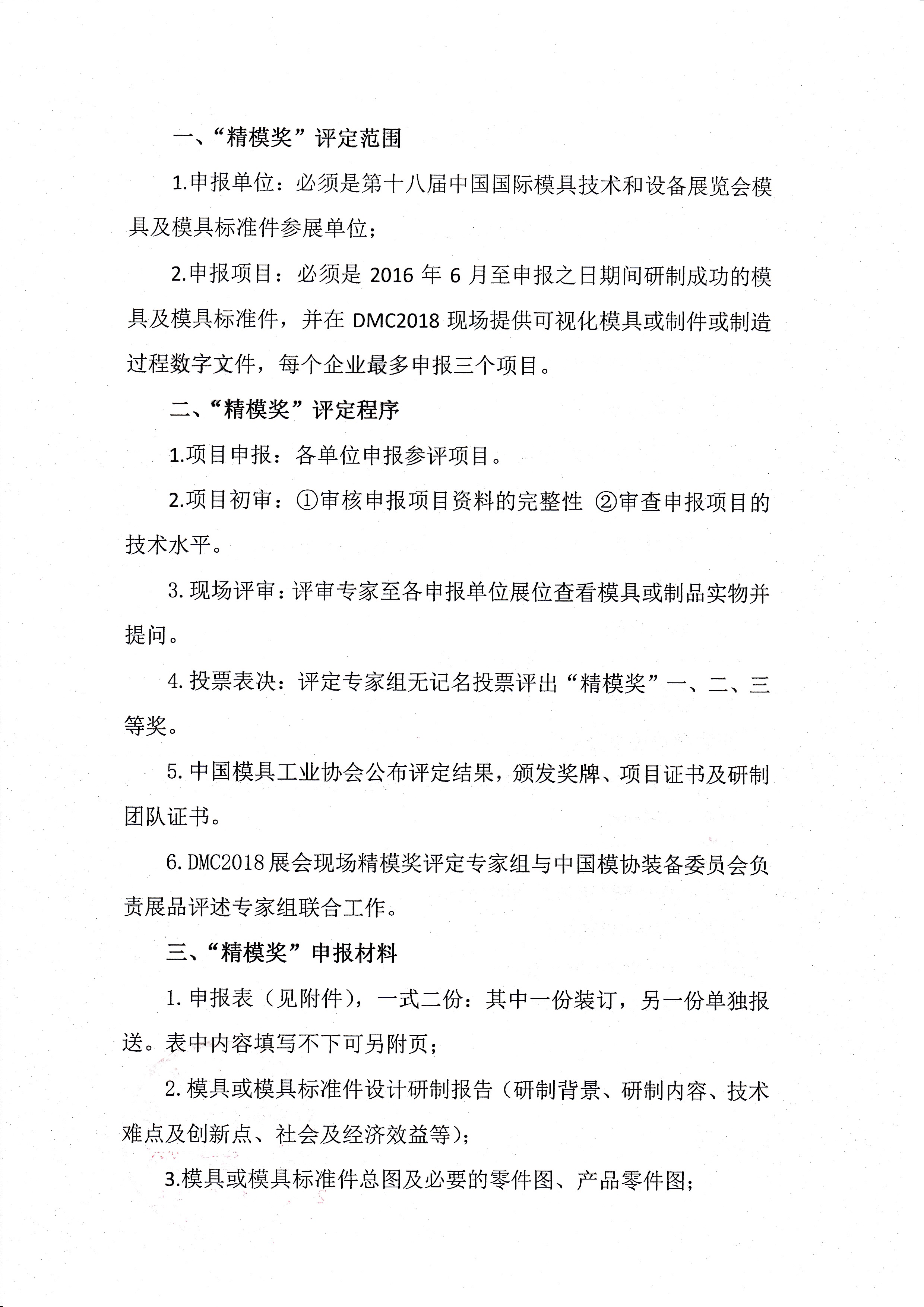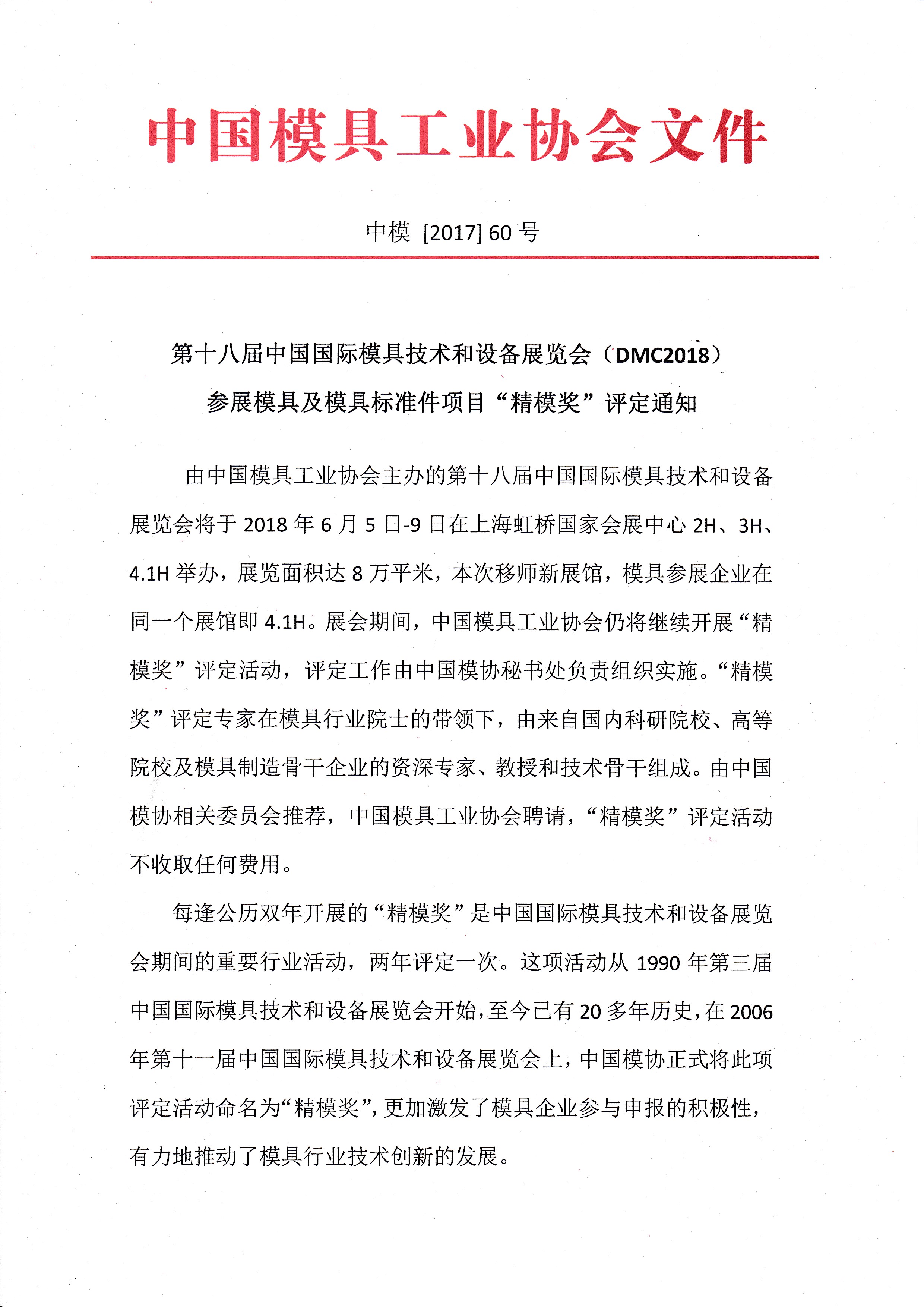 第十八届中国国际模具技术和设备展览会(DMC2018)参展模具及模具标准件项目“精模奖”评定通知