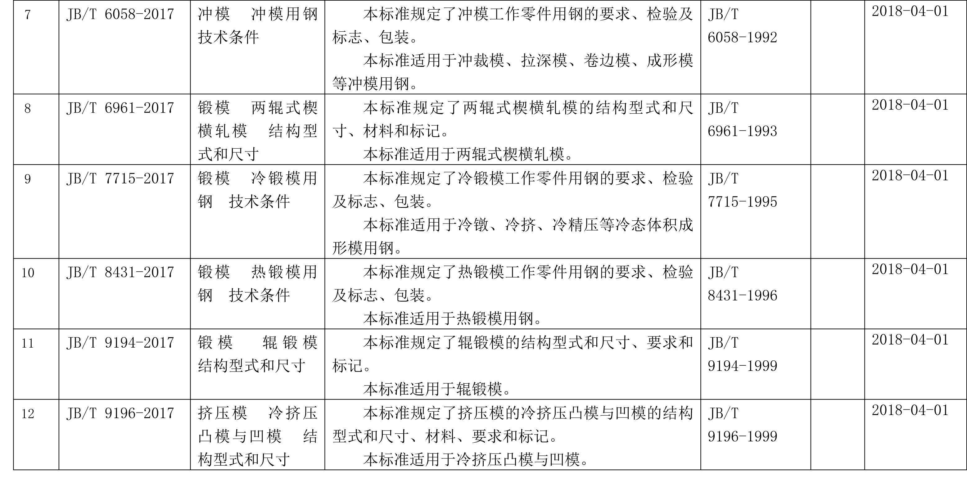 工业和信息化部批准《钢结构用水性防腐涂料》等691项行业标准(标准编号、名称、主要内容及实施日期见附件1),其中化工行业标准192项、冶金行业标准13项、有色金属行业标准30项、建材行业标准13项、机械行业标准212项、制药装备行业标准5项、轻工行业标准60项、纺织行业标准80项、包装行业标准4项、核行业标准2项、电子行业标准17项、通信行业标准63项;批准《大型核电机组汽轮机整锻低压转子锻件 技术条件》1项机械行业标准修改单(见附件2),现予公布。行业标准修改单自发布之日起实施。