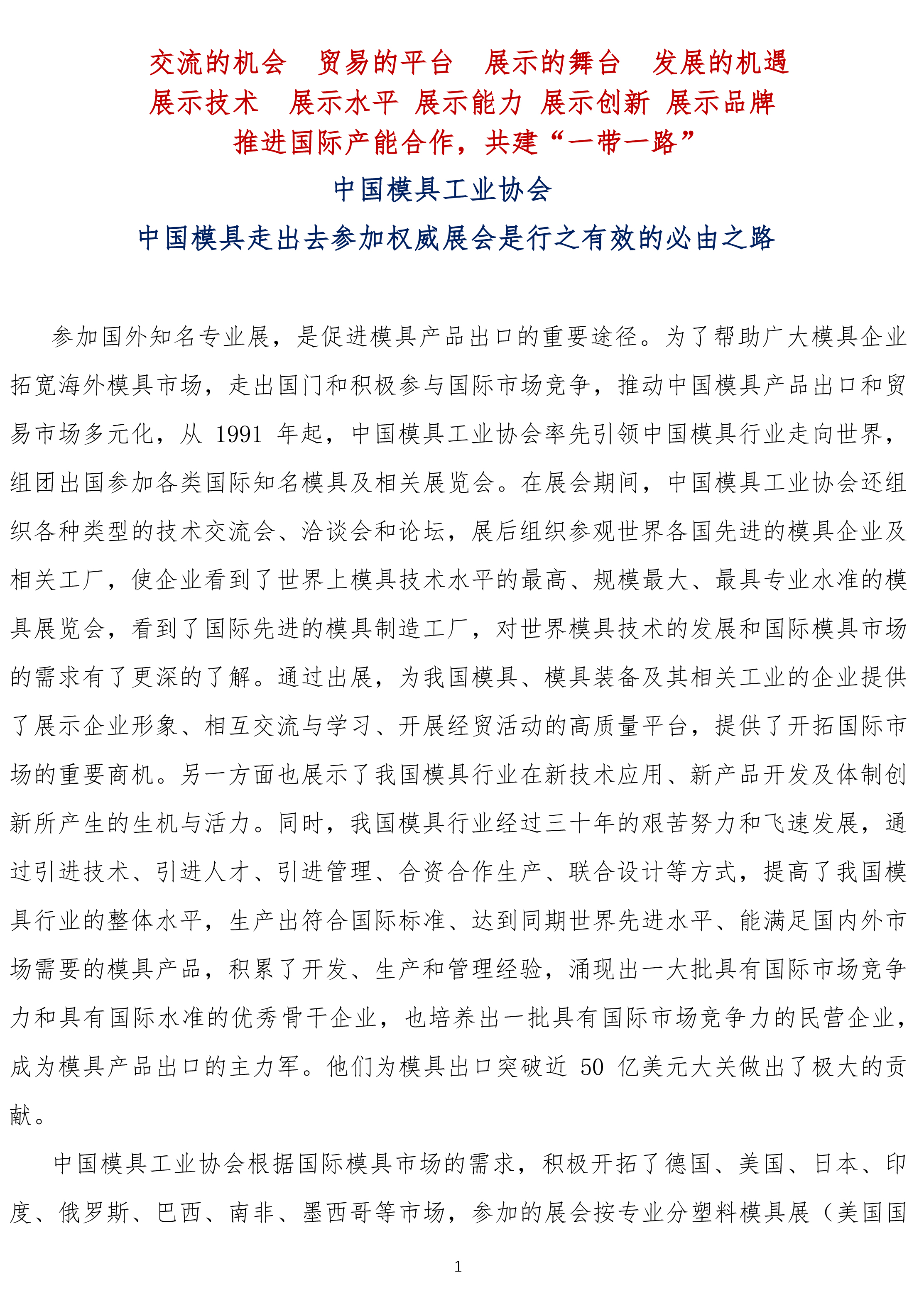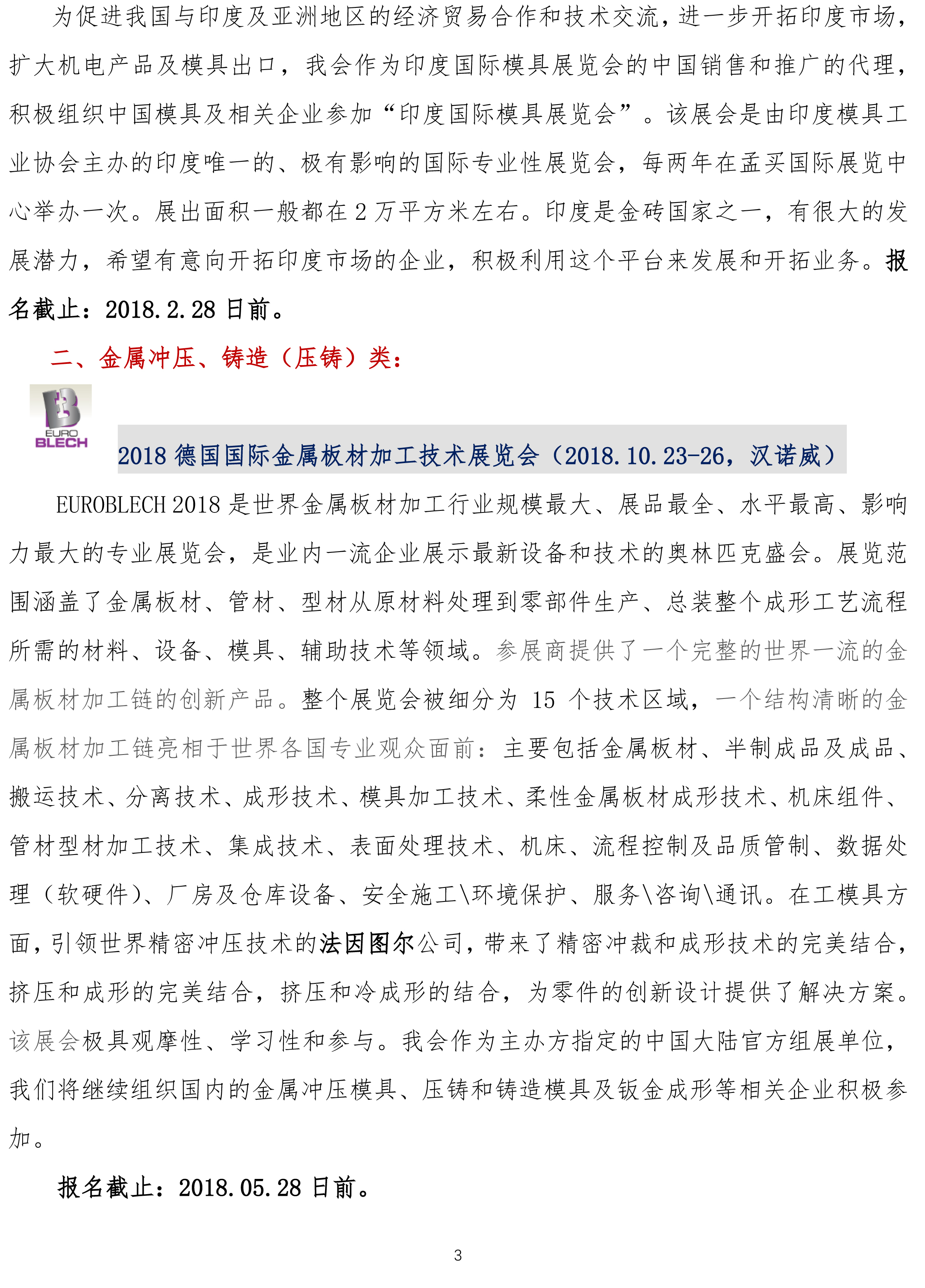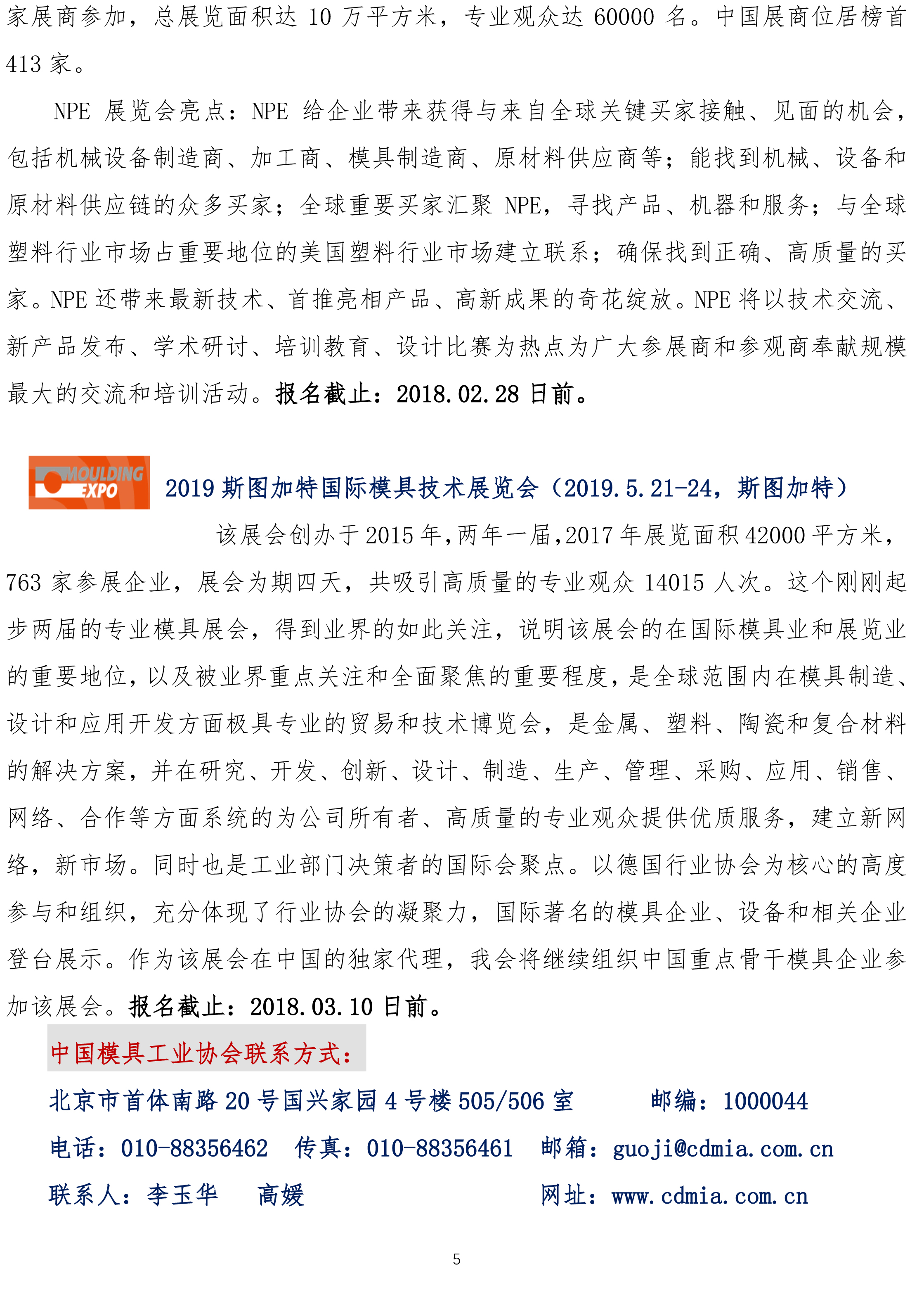 2018年中国模具工业协会组团参加国际著名模具及相关展览会介绍