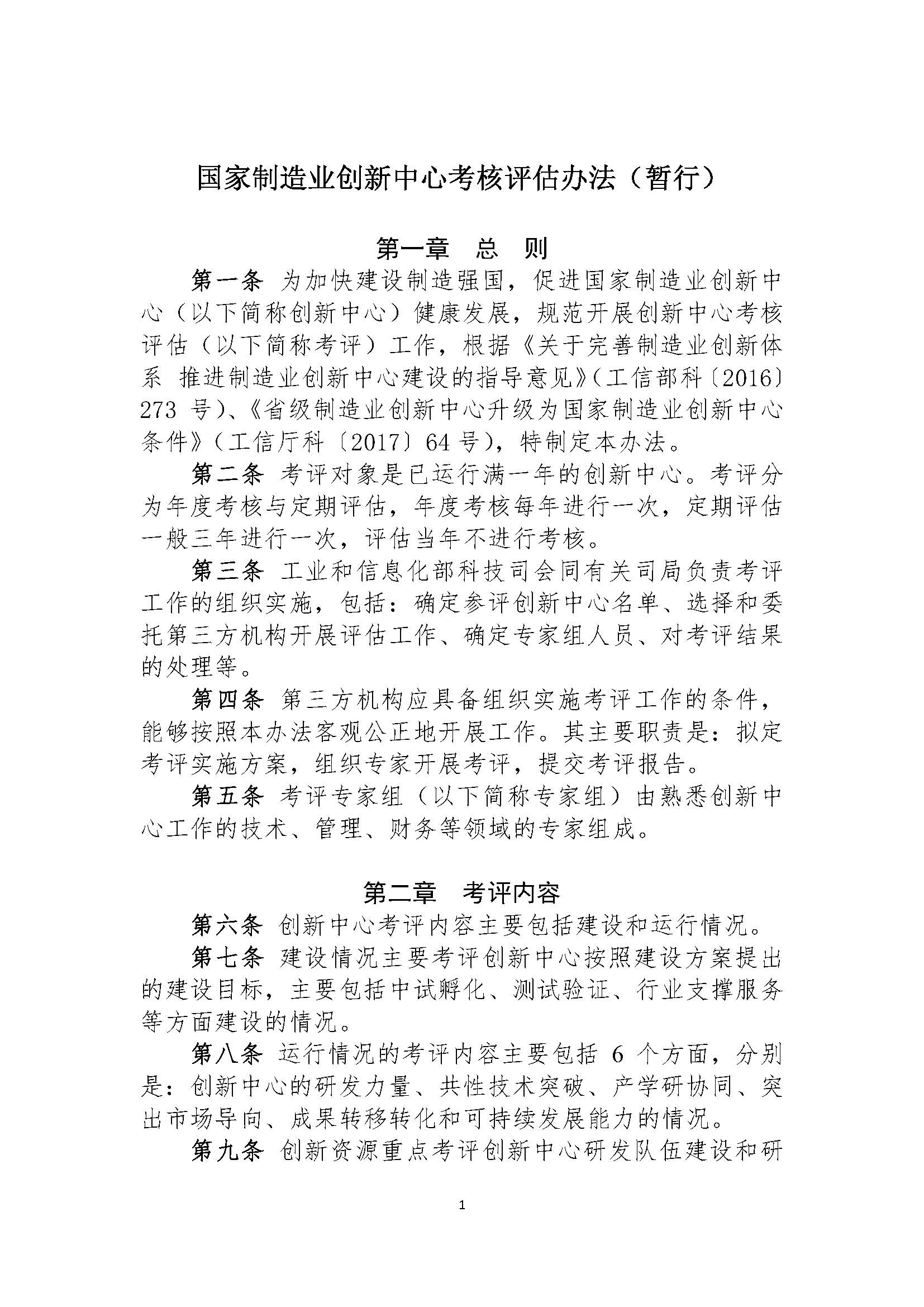 工业和信息化部办公厅关于印发《国家制造业创新中心考核评估办法(暂行)》的通知