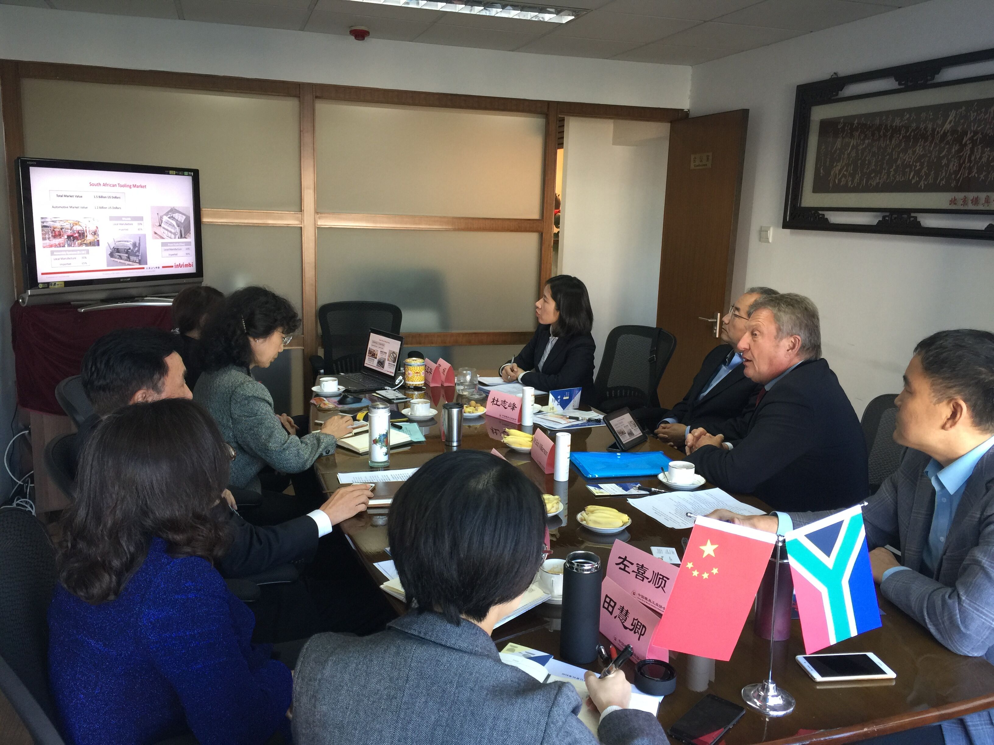 Mr.Bob主席较全面介绍了南非汽车工业有关产量和工具需求的现状以及北汽中国的投资情况。积极倡议与中国模协开展模具产业及相关联产业的多方合作,以支持南非汽车产业发展,特别是新进投资的北汽控股在南非的基地汽车焊装线、涂装线、总装线的情况交流,也是本次会谈讨论后续中国模具参与可能性的研讨。