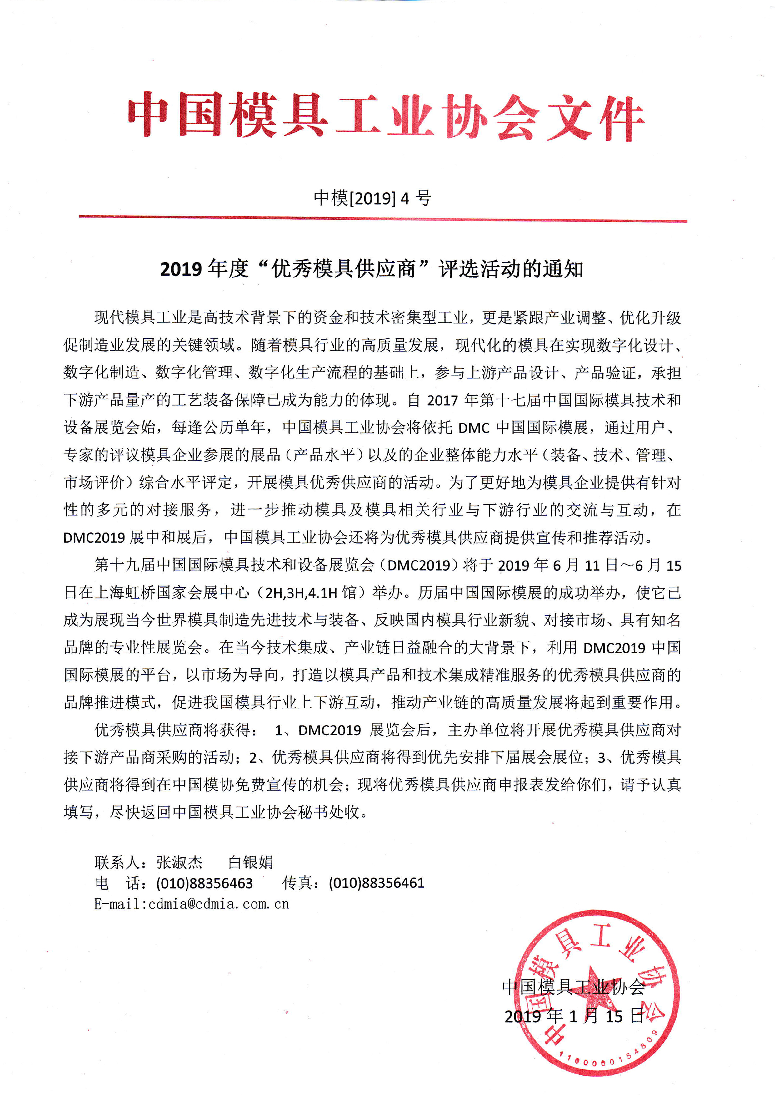 2019年度“优秀模具供应商”评选活动的通知