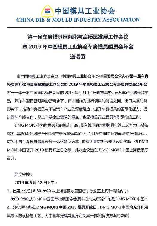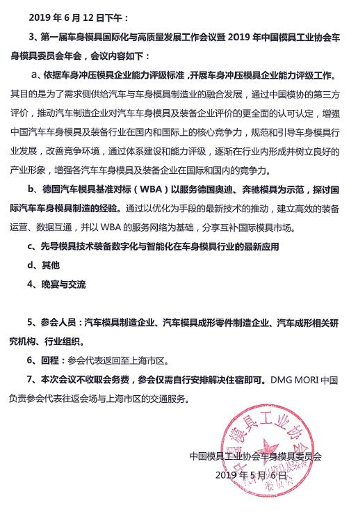 第一届车身模具国际化与高质量发展工作会议暨2019年中国模协车身模具委员会年会邀请函