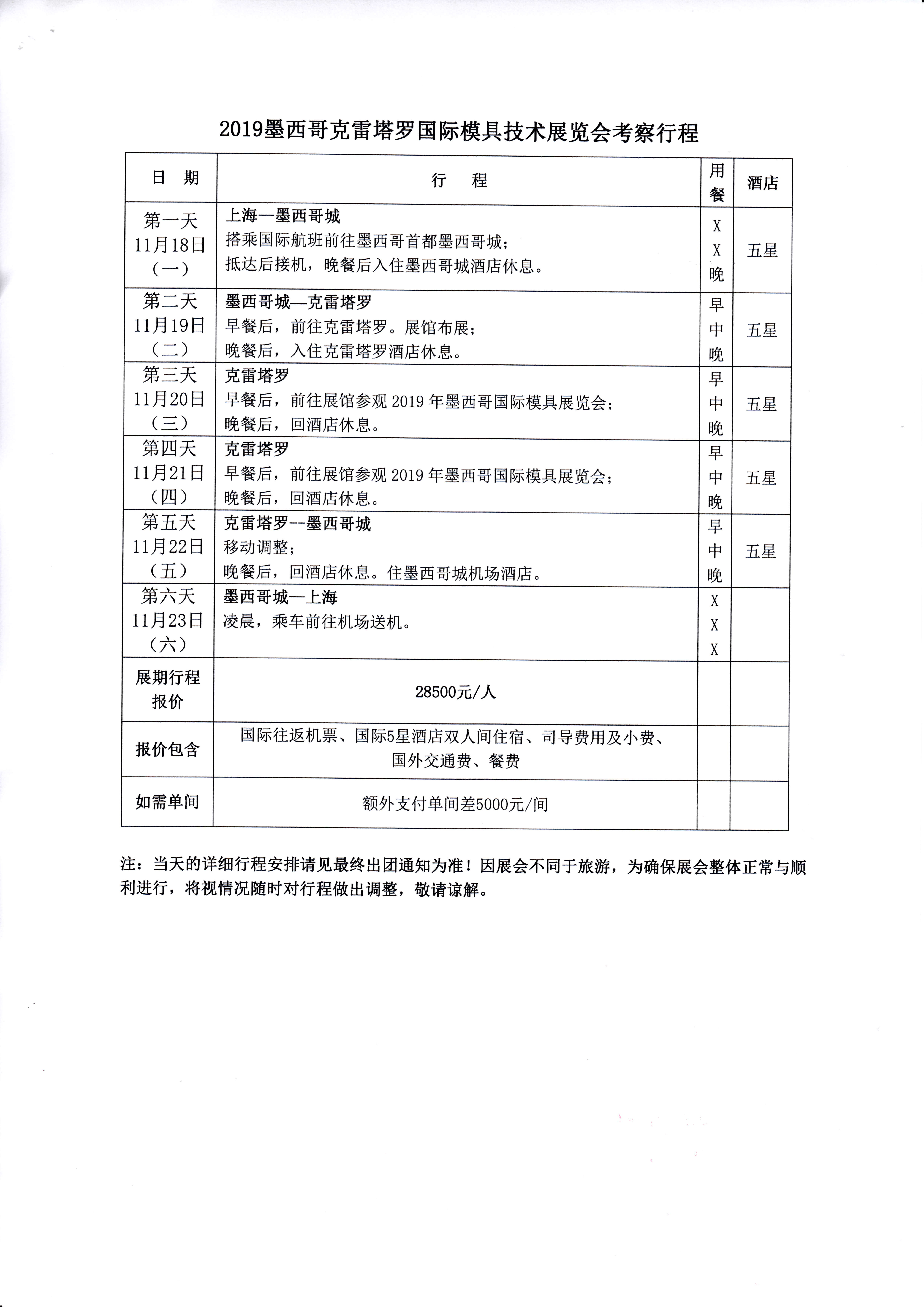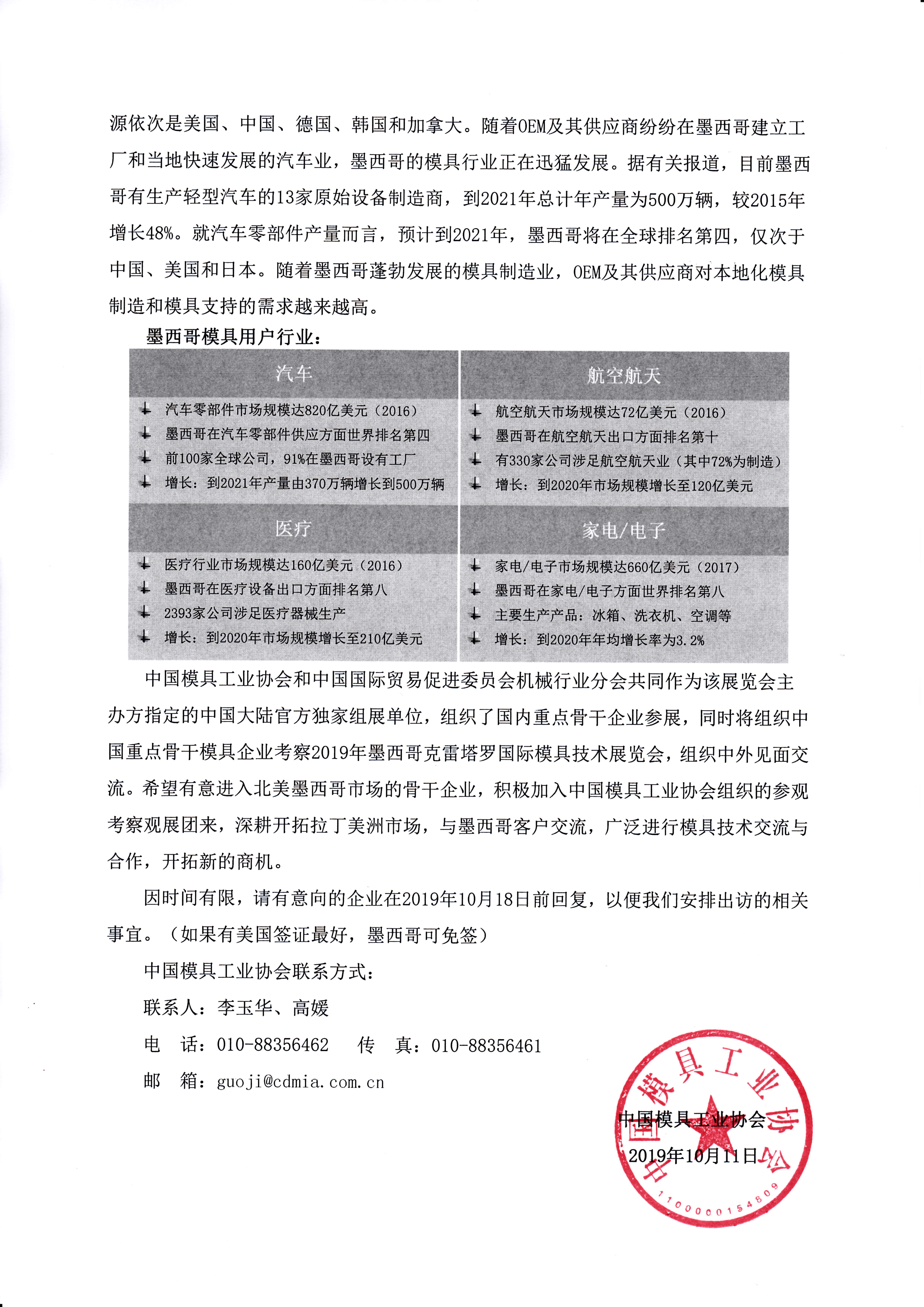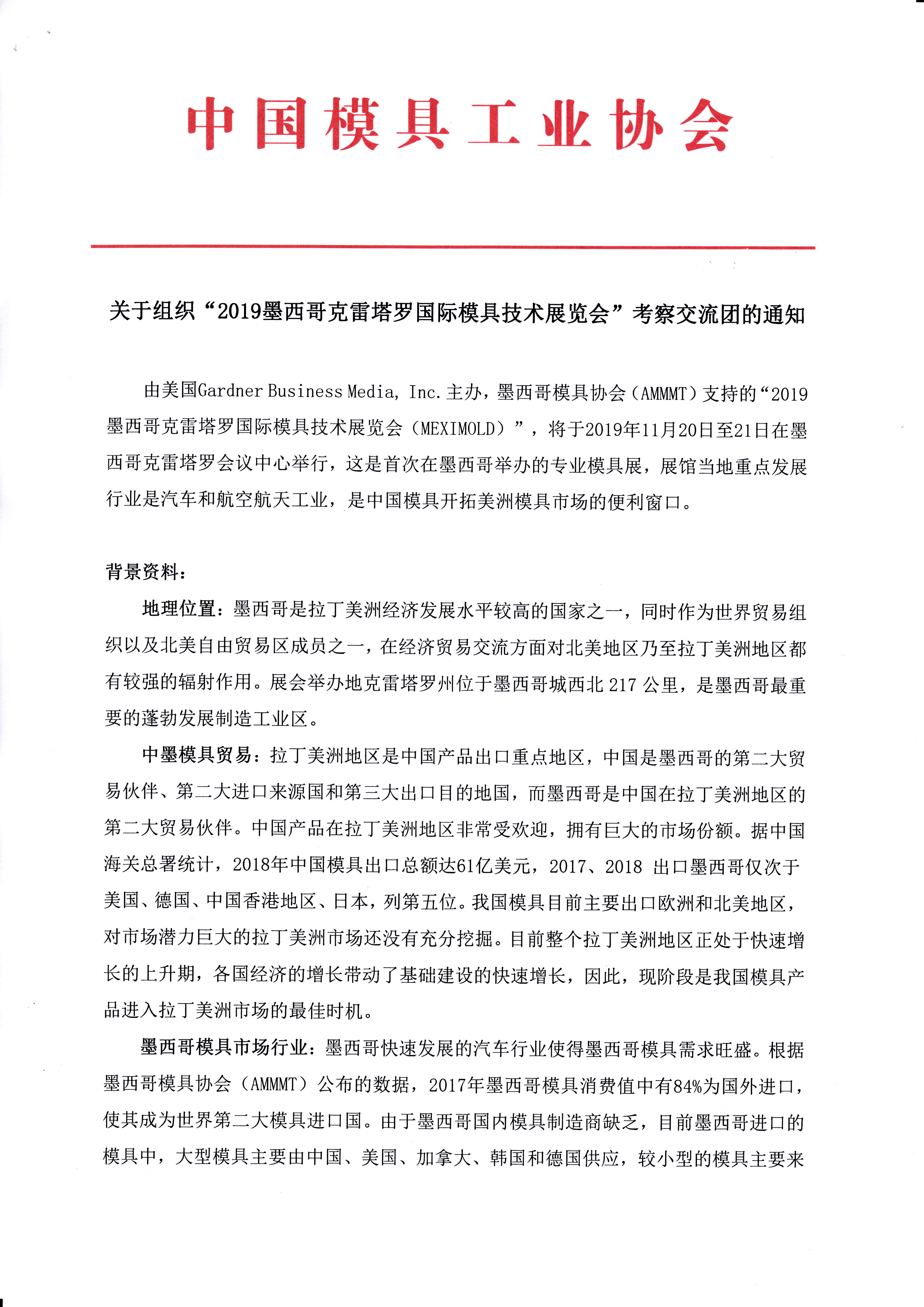 关于组织“2019墨西哥克雷塔罗国际模具技术展览会”考察交流团的通知