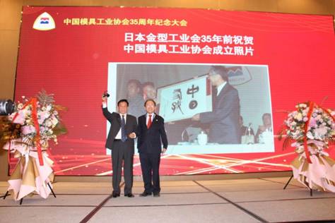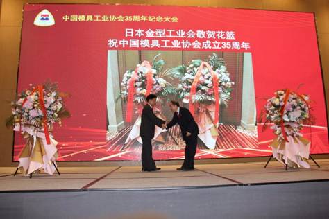 值得一提的是,在大会伊始,日本金型工业会也为本次大会敬送了花篮,祝贺中国模协成立35周年;而在35年前,日本金型工业会也曾敬送过一幅字,祝贺中国模协的成立。此举,见证了中日两国模具行业35年来良好的交流与合作。