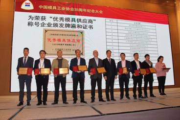 为荣获“优秀模具供应商”称号的企业颁发牌匾和证书