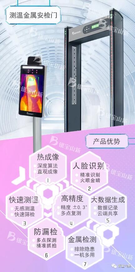在疫情得到控制,经济引擎加速,返工、返校大潮到来之际,如何配合政府和企业做好复工、复课人员健康状态的监控,快捷准确识别体温,形成一人一档的健康档案,为社会提供更稳妥的健康安全保障?银宝山新迅速整合集团旗下子公司“美恩信息”的信息化开发技术,“白狐设计”的工业设计能力,在最短的时间内针对疫情需求精准开发研制了以热成像技术和云端大数据为基础的智慧测温门并充分利用自身雄厚的制造实力,以最快的速度投放市场,为广大复工企业、学校、机关单位提供了无需等待、防漏检、精准测温、轨迹可溯的健康监测智慧解决方案。