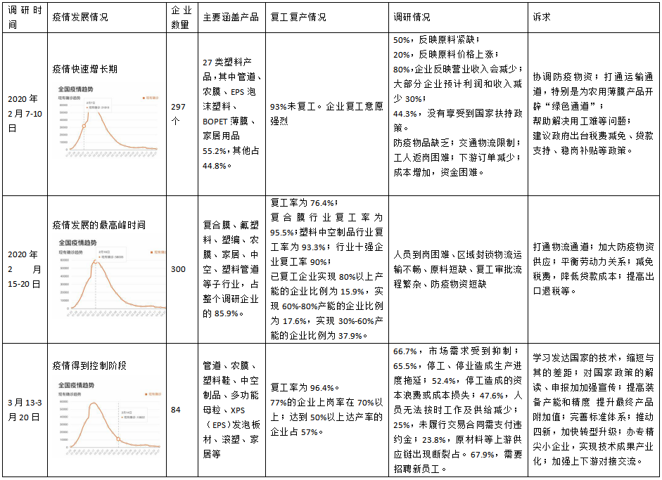 为更好的服务行业企业,了解疫情的影响及复工复产情况,倾听企业的声音,反映企业诉求。中国塑协分别进行了三次调研,681家企业发回调查问卷。