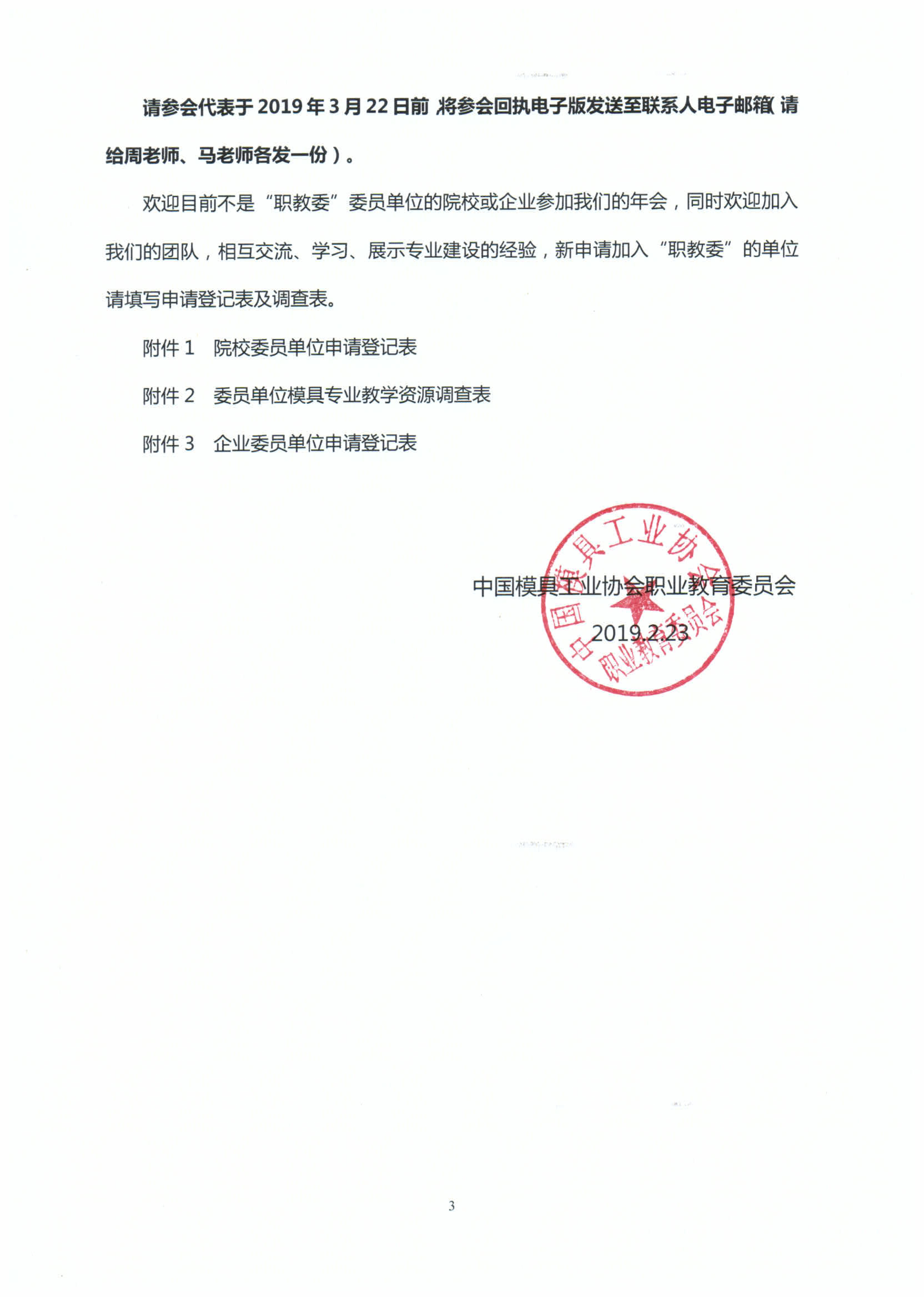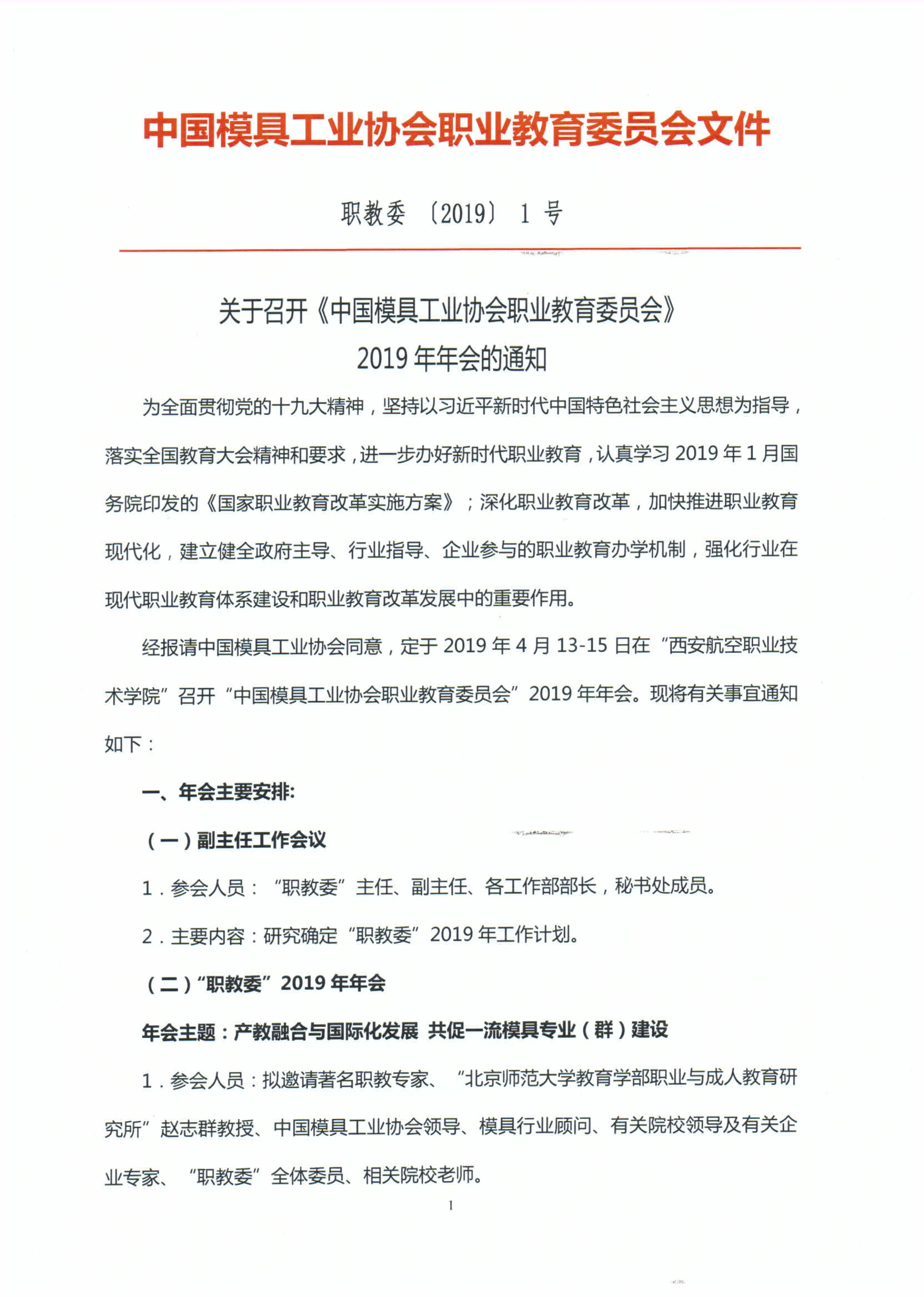 关于召开《中国模具工业协会职业教育委员会》2019年年会的通知