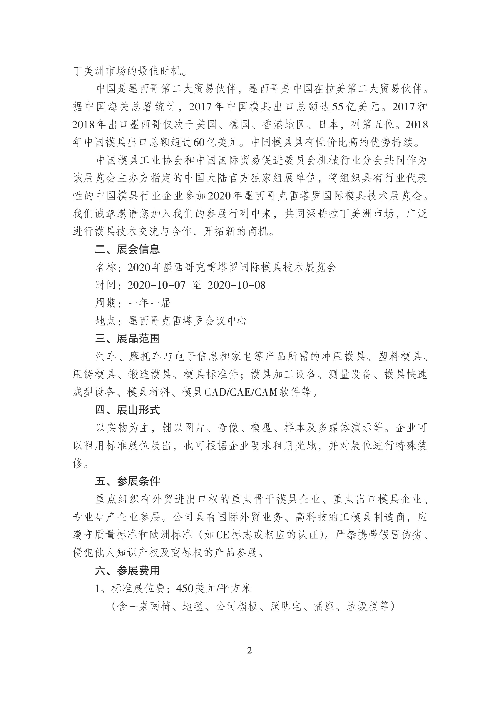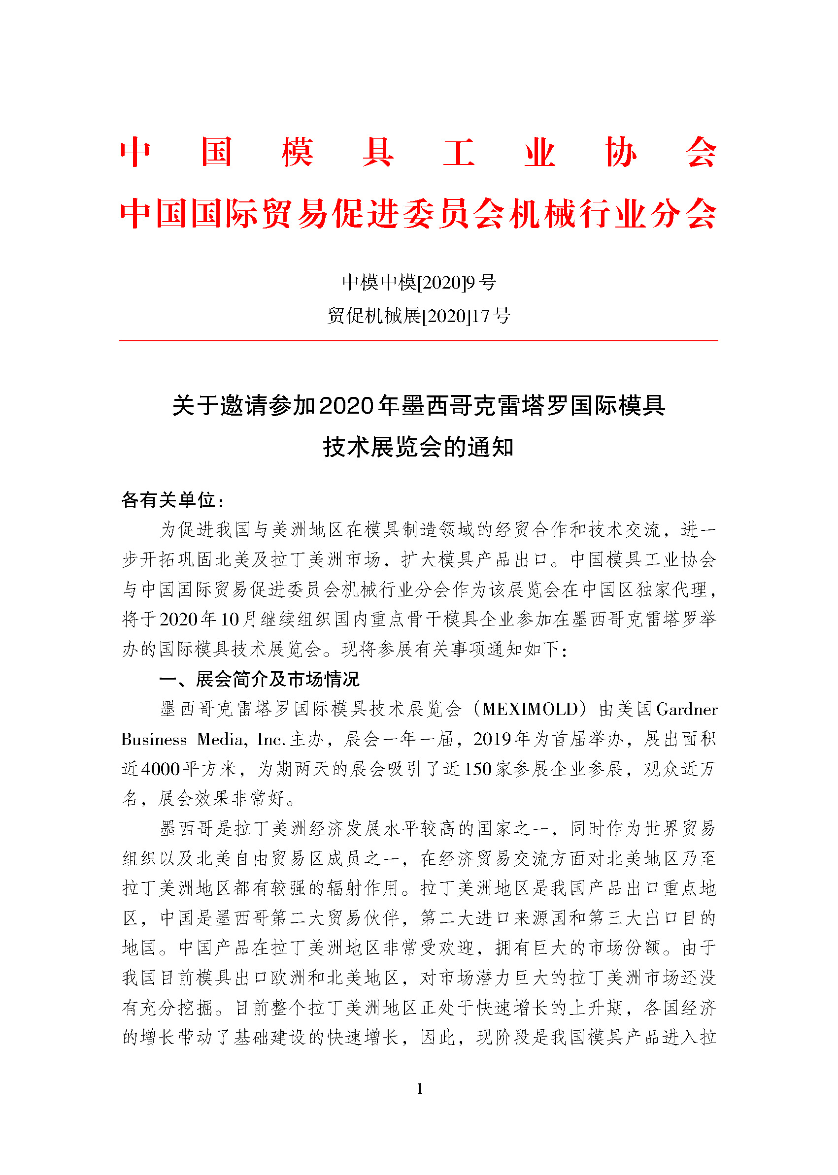 关于邀请参加2020年墨西哥克雷塔罗国际模具技术展览会的通知