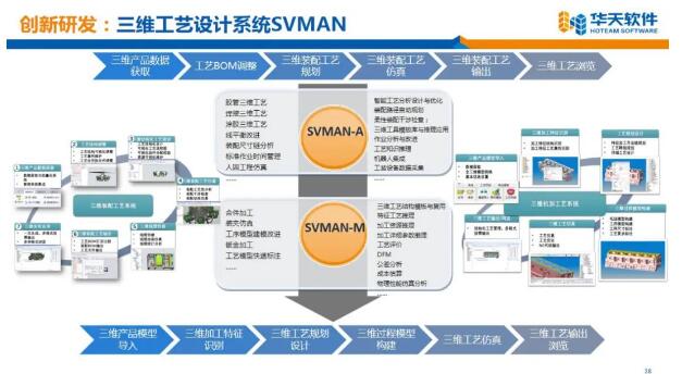 SVMAN是基于三维产品模型的计算机辅助工艺设计(3DCAPP)系列工具型产品, 包括三维装配工艺设计系统SVMAN-A和三维机械加工工艺设计系统SVMAN-M。SVMAN将工艺设计思路和方法融入到三维产品模型的可视化交互过程中,以三维模型、动画等形式,模拟产品在工厂的制造过程,并将工艺设计发布至终端,指导现场生产。
