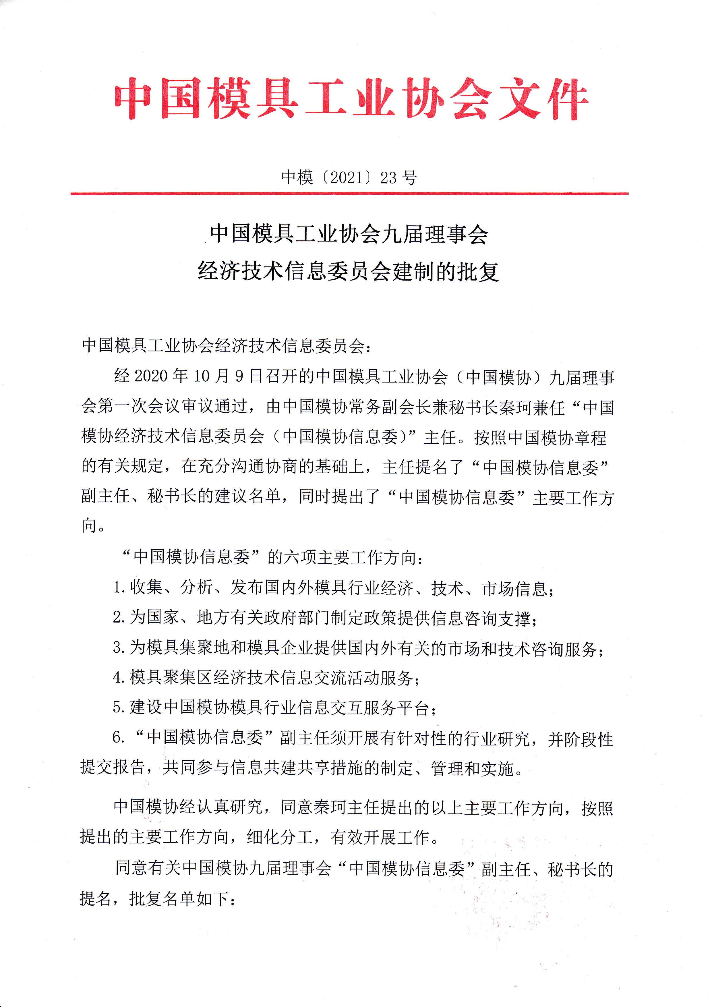 第九届理事会经济技术信息委员会建制的批复