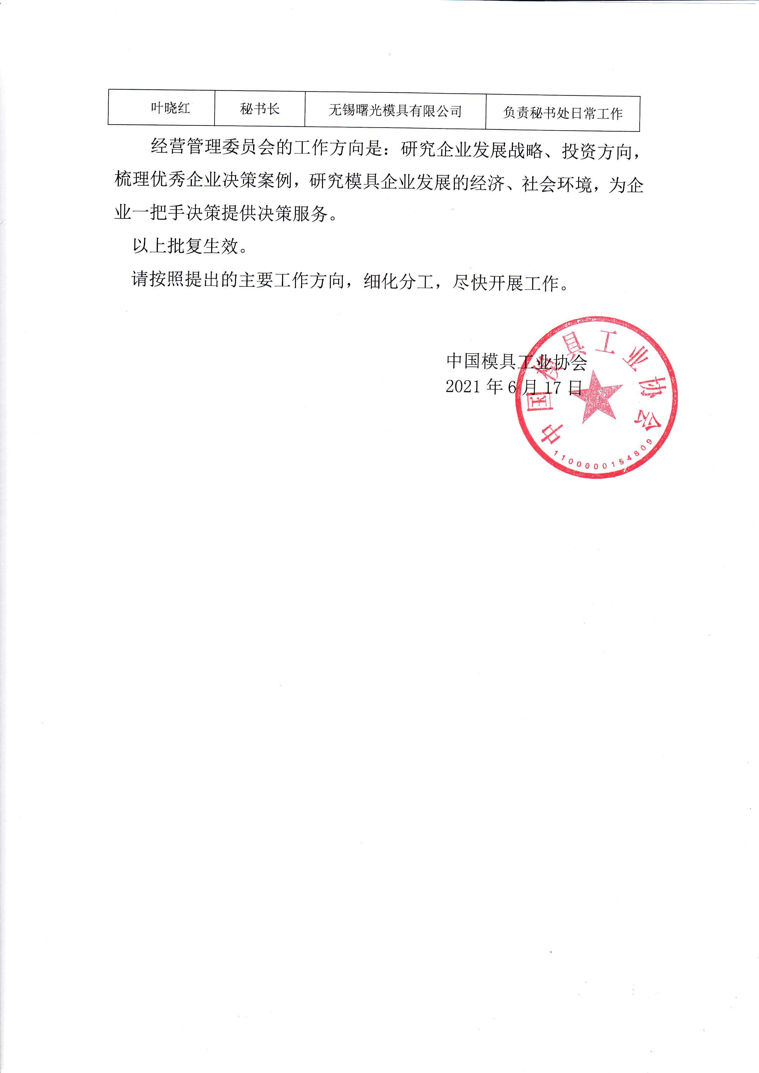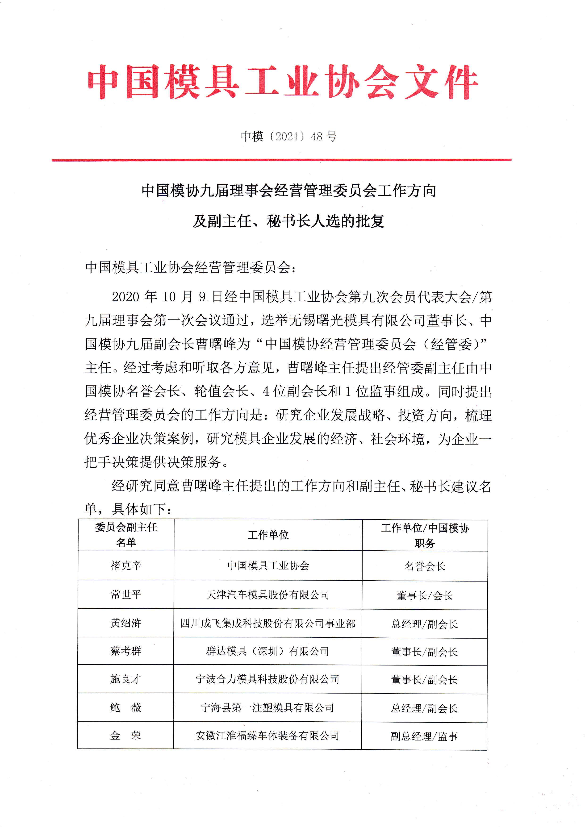 中国模协九届理事会经营管理委员会工作方向及副主任、秘书长人选的批复