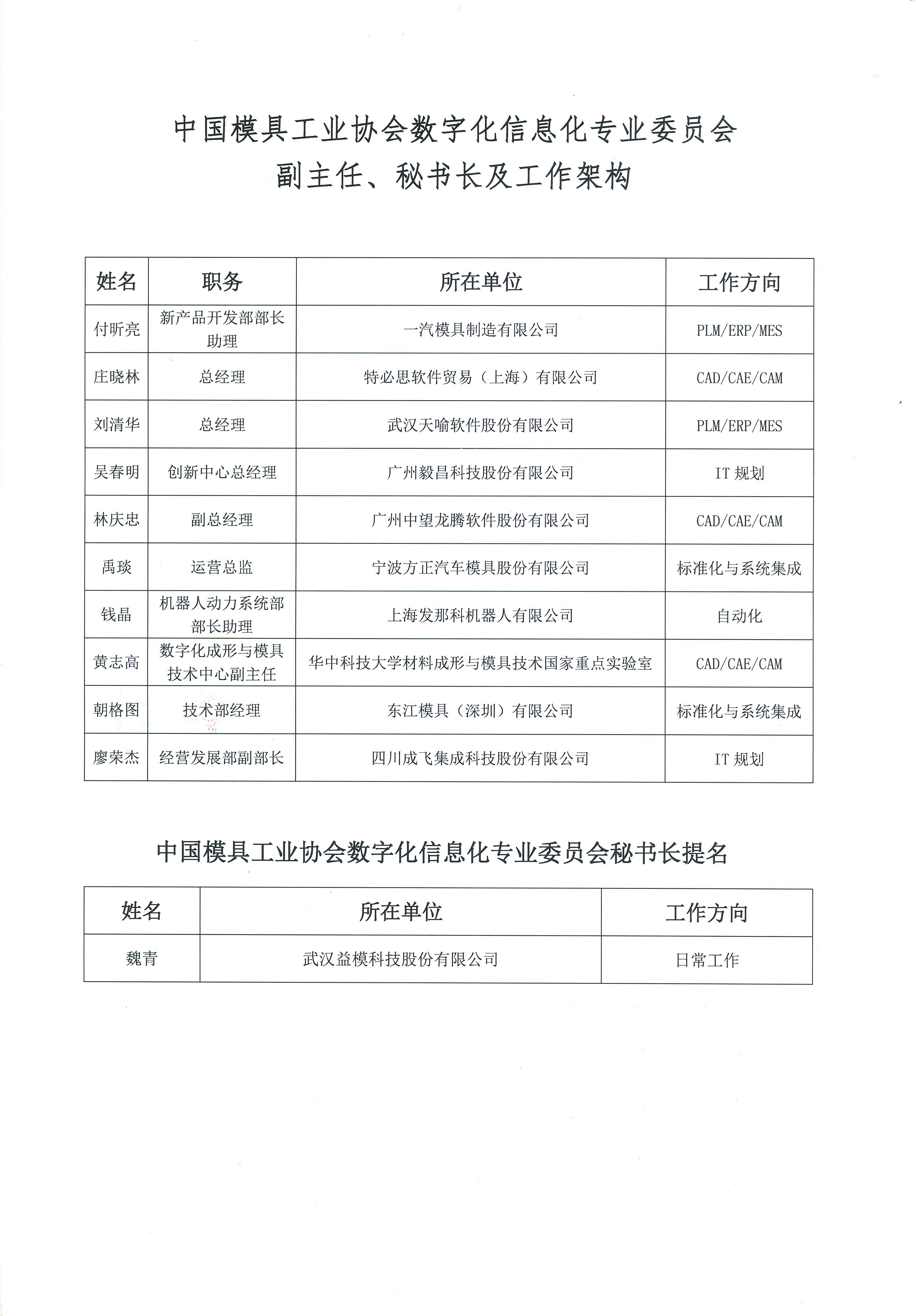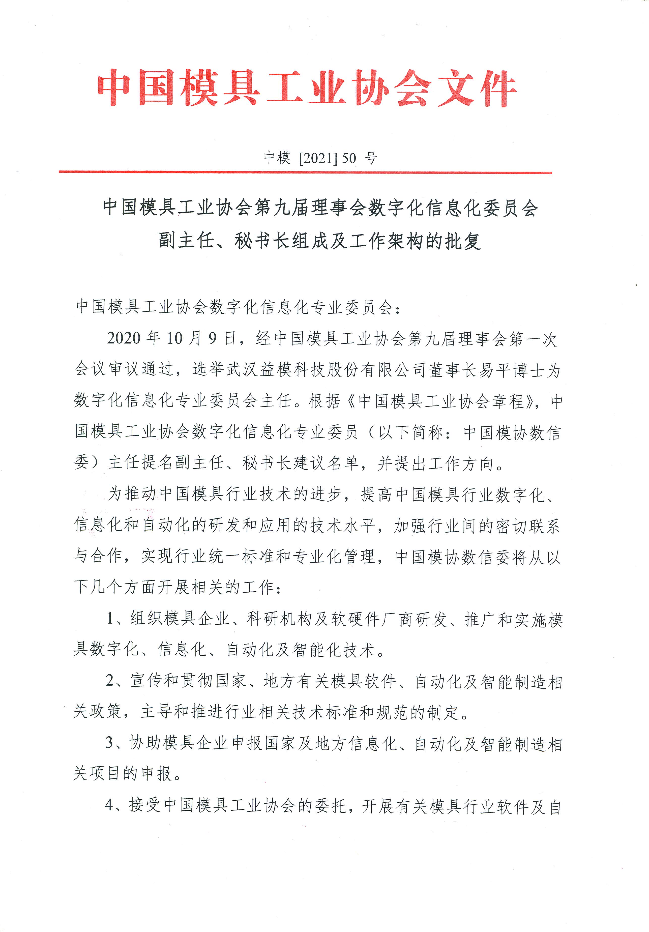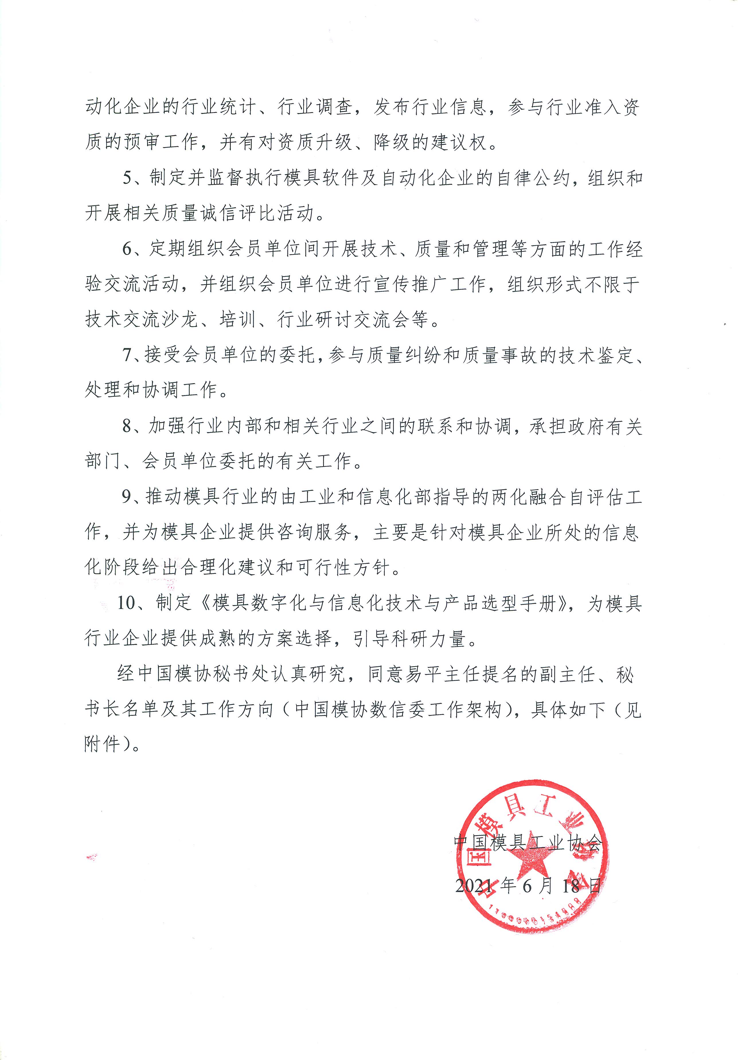 中国模协第九届理事会数字化信息化委员会副主任、秘书长组成及工作架构的批复