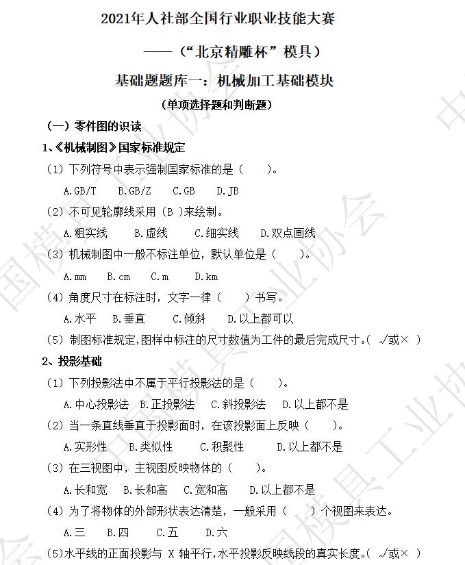 ——(“北京精雕杯”模具)理论题库