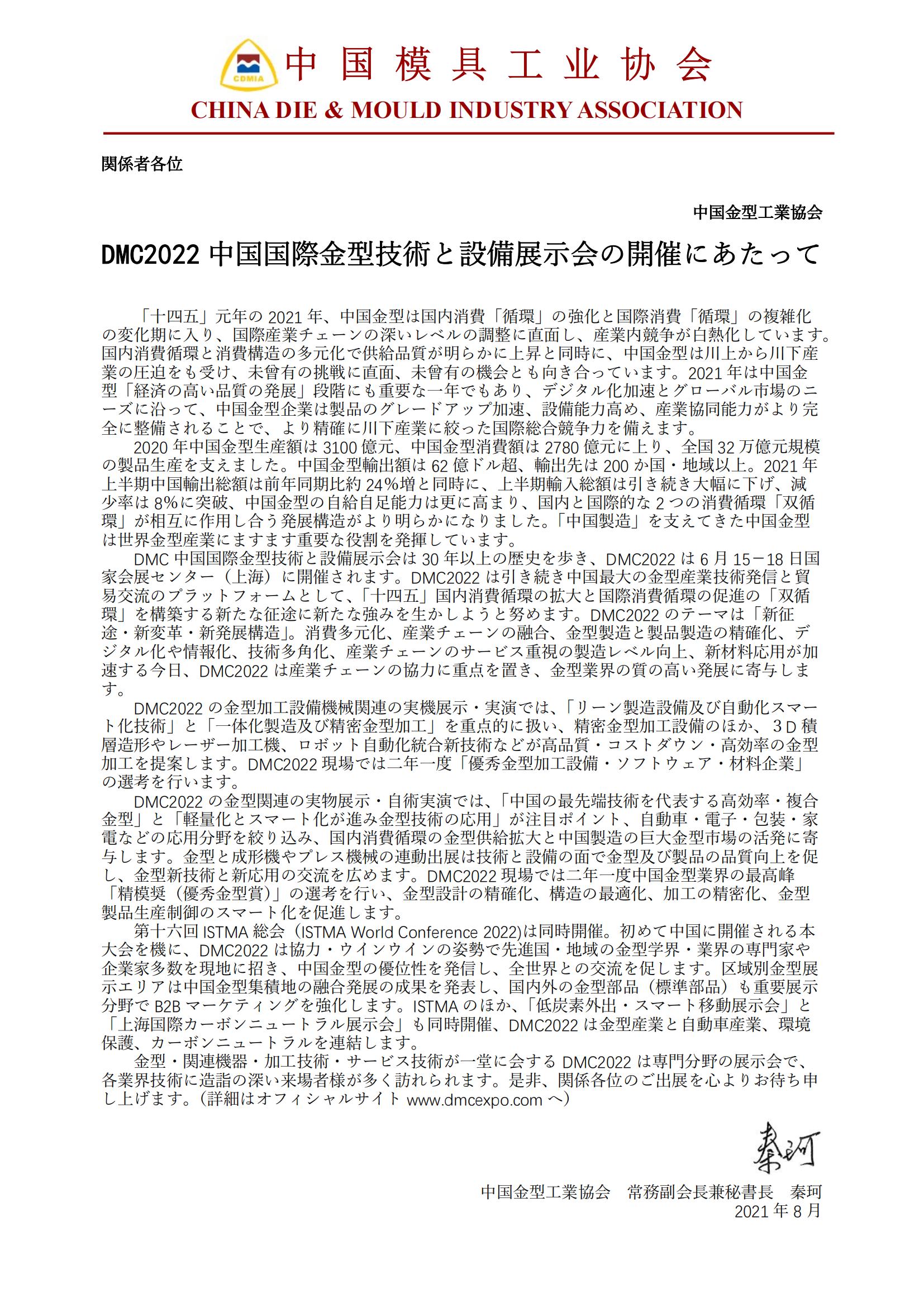 DMC2022 中国国際金型技術と設備展示会の開催にあたって