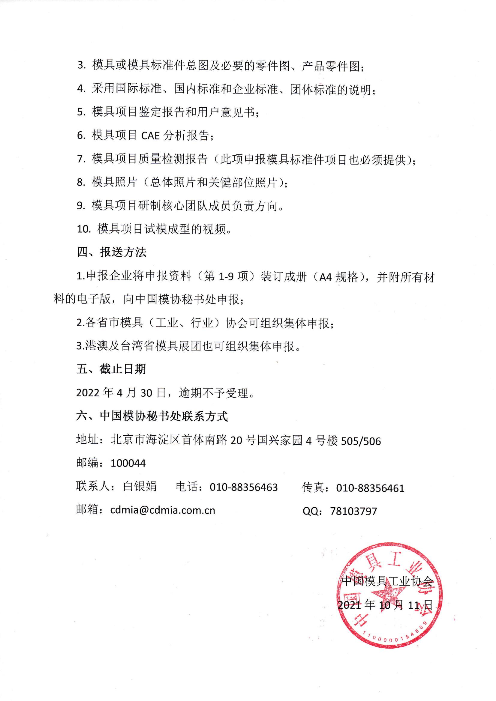第二十二届中国国际模具技术和设备展览会(DMC2022) 参展模具及模具标准件项目“精模奖”评定通知