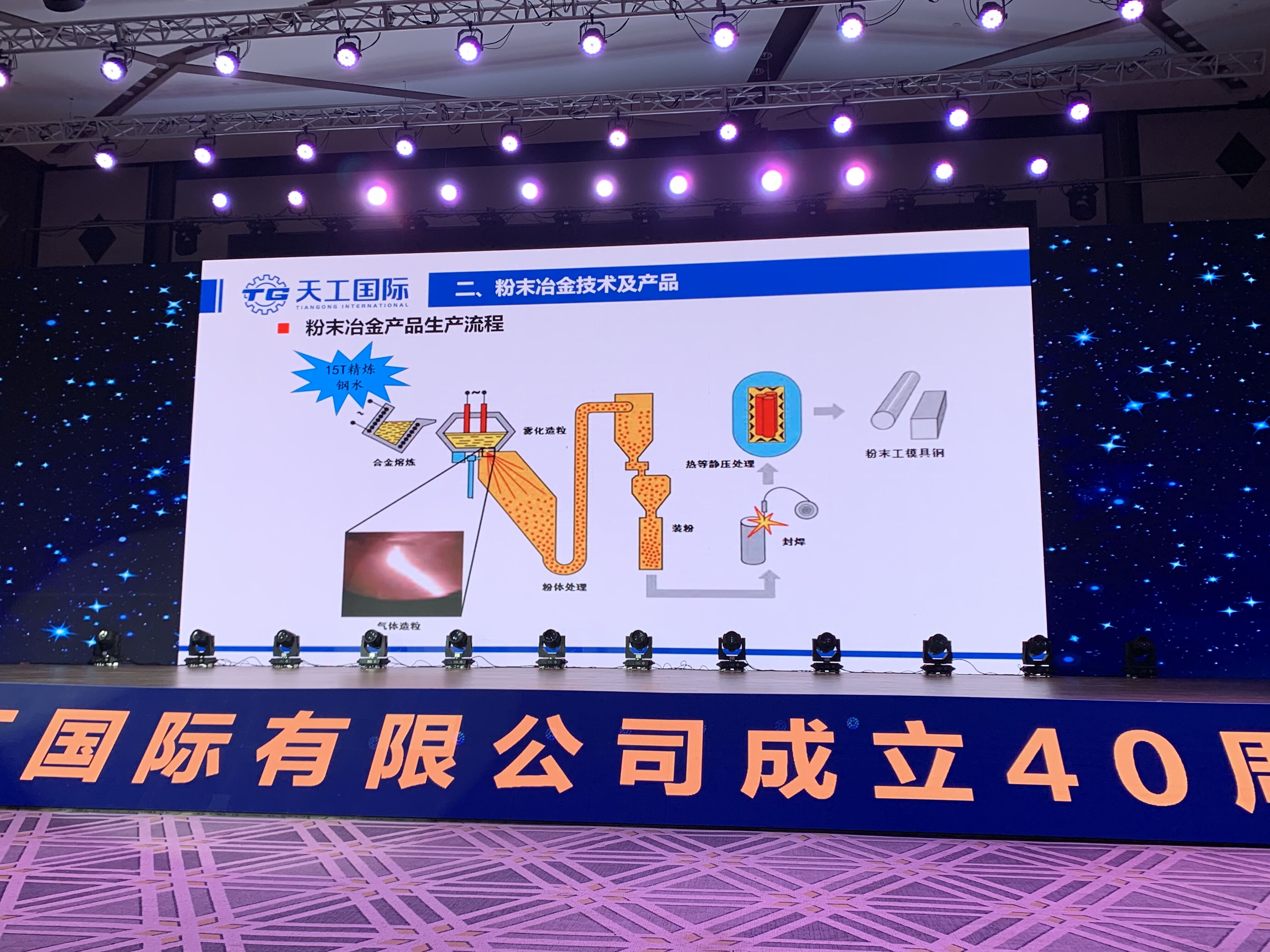 天工国际副总经理、首席技术官廖俊介绍天工“高合金粉末工模具钢高端模具钢”的粉末冶金技术及产品