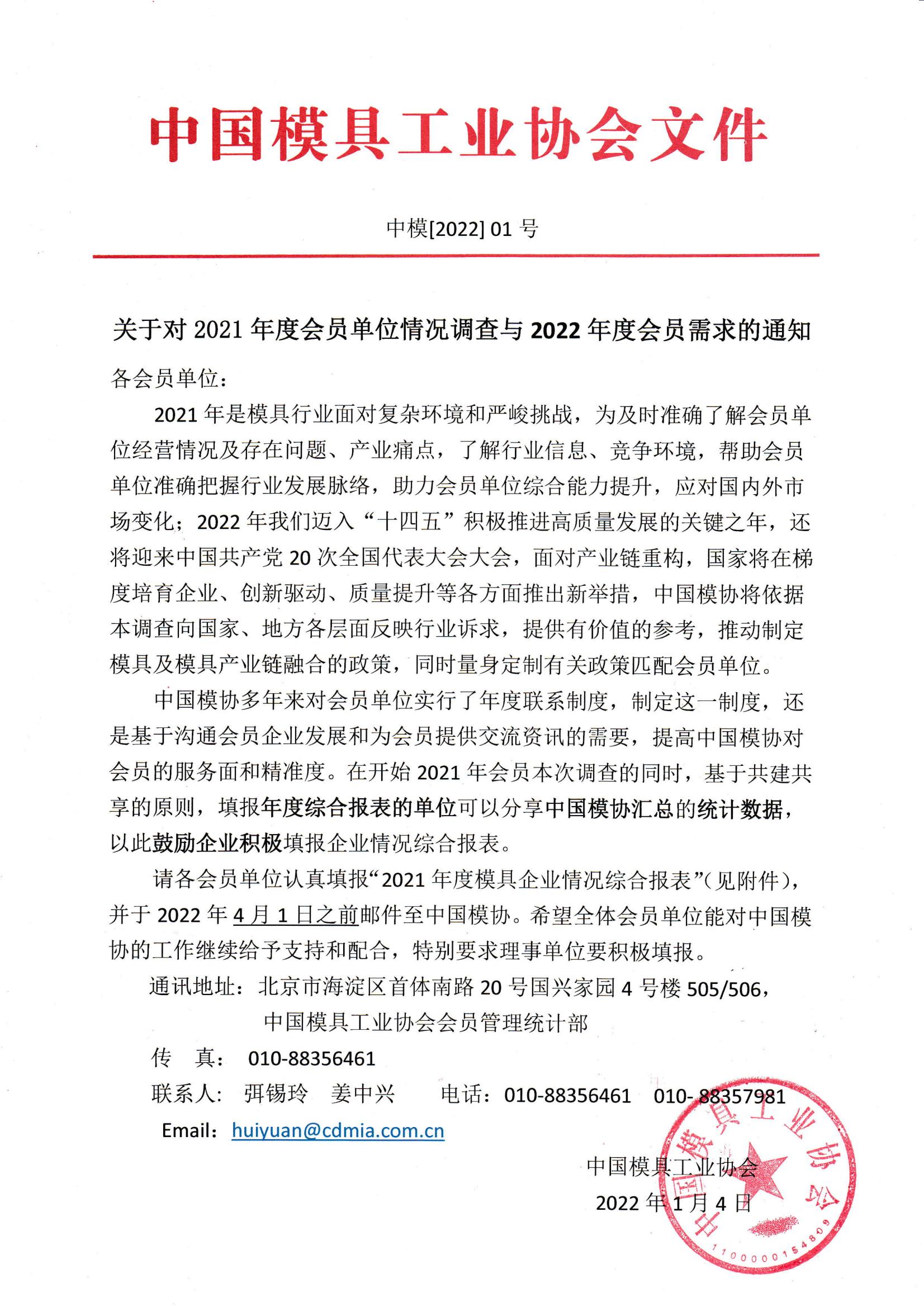 关于对2021年度会员单位情况调查与2022年度会员需求的通知