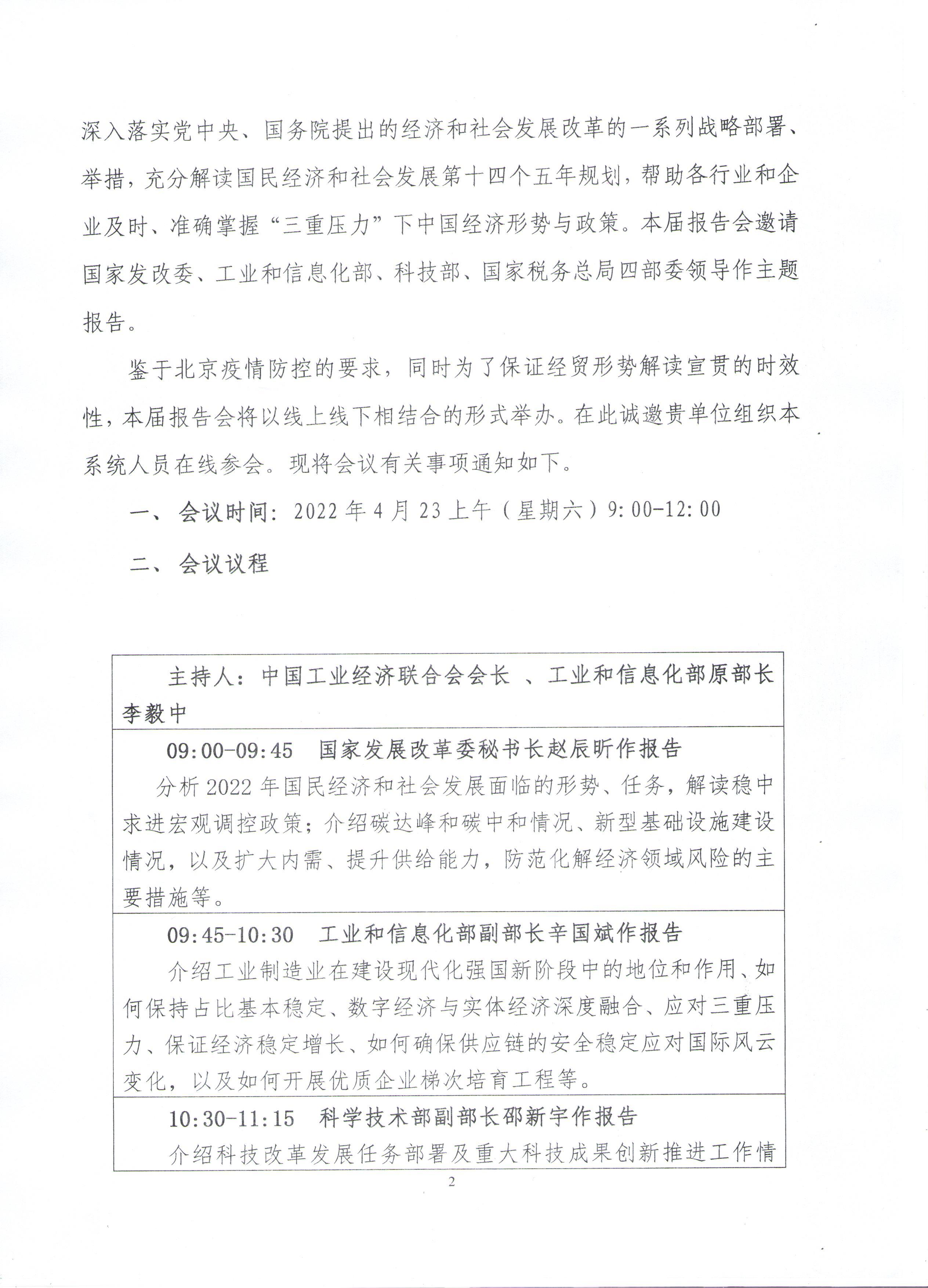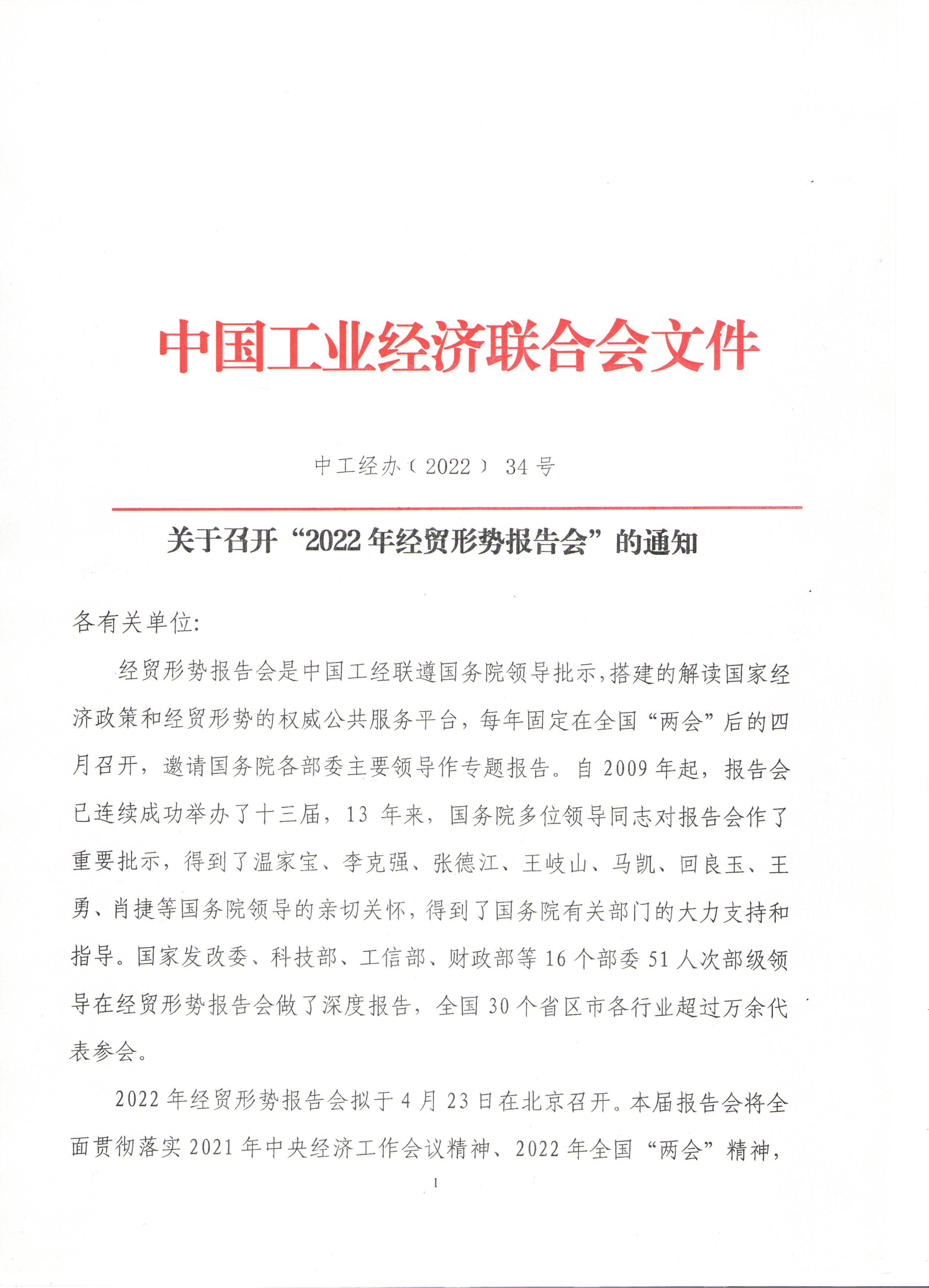 关于召开“2022年经贸形势报告会”的通知