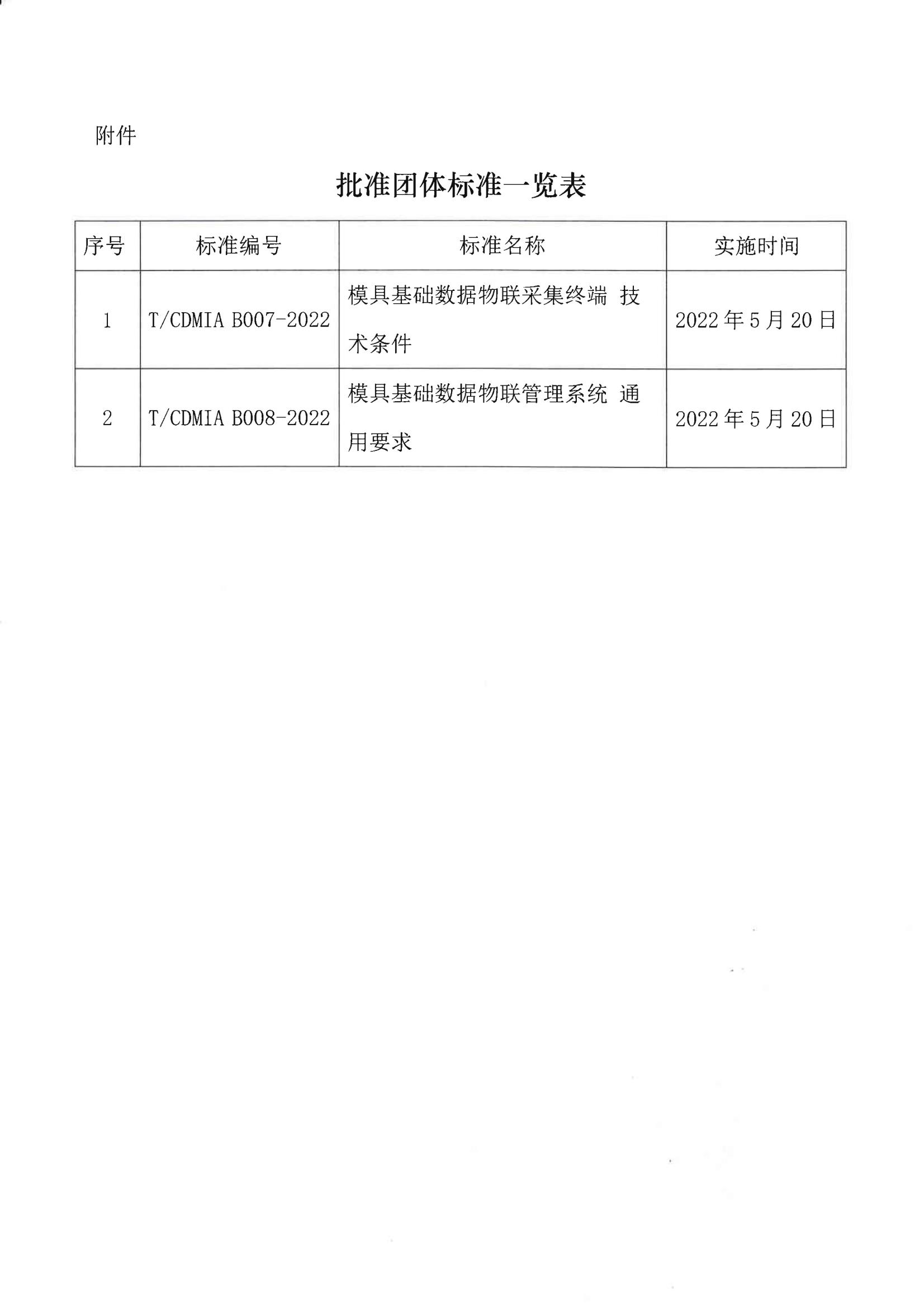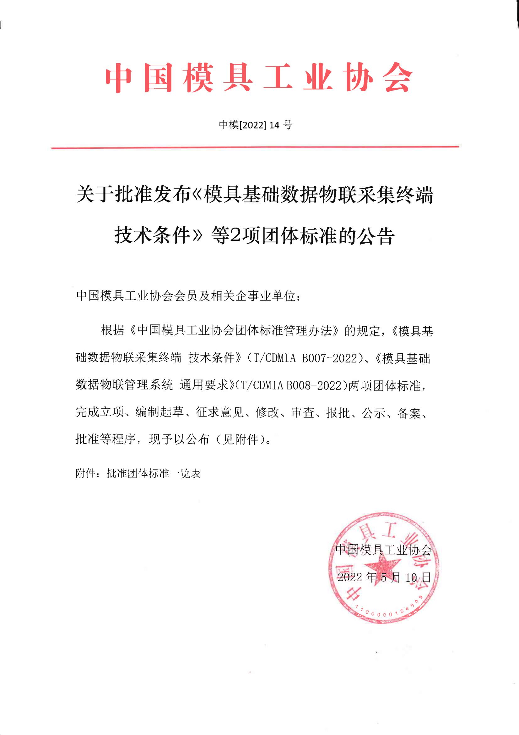 关于批准发布《模具基础数据物联采集终端技术条件》等2项团体标准的公告