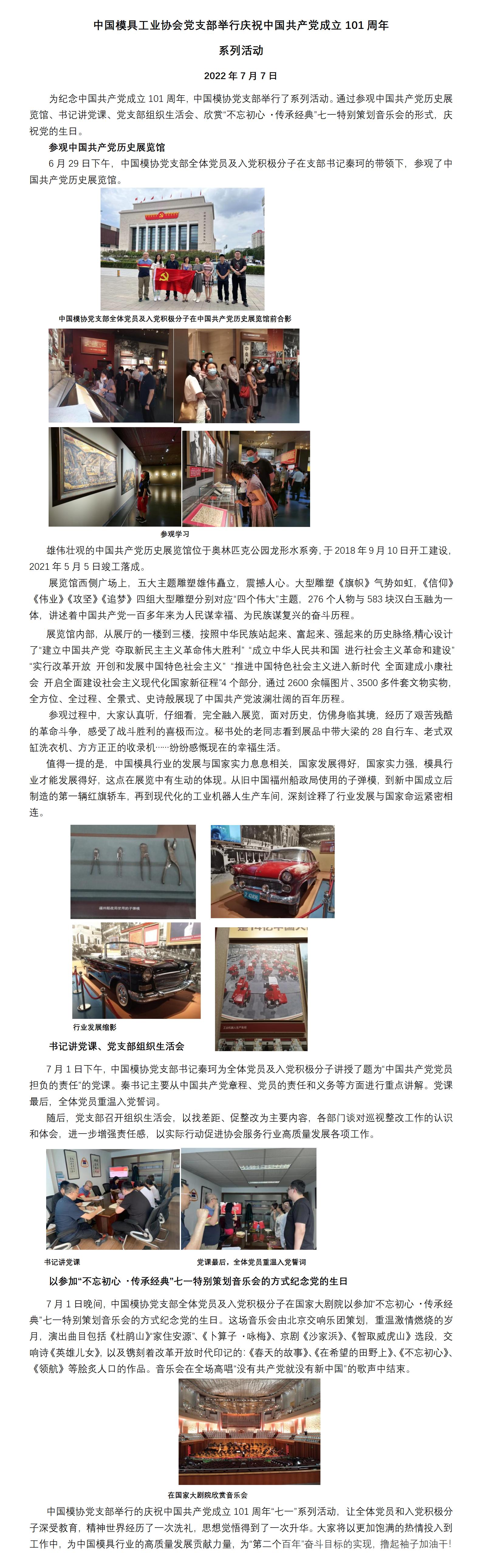 中国模具工业协会党支部举行庆祝中国共产党成立101周年 系列活动