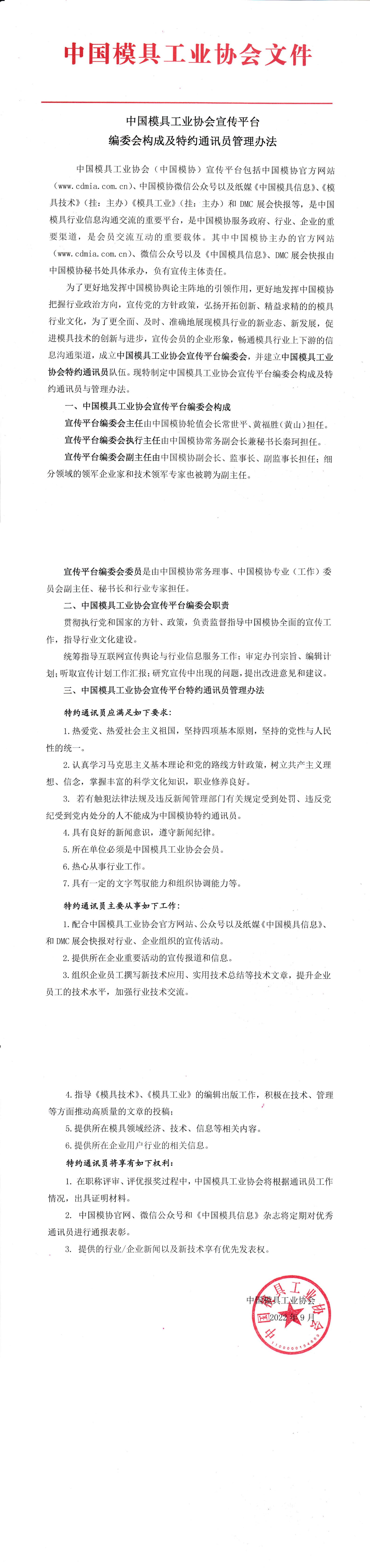 中国模具工业协会宣传平台编委会构成及特约通讯员管理办法
