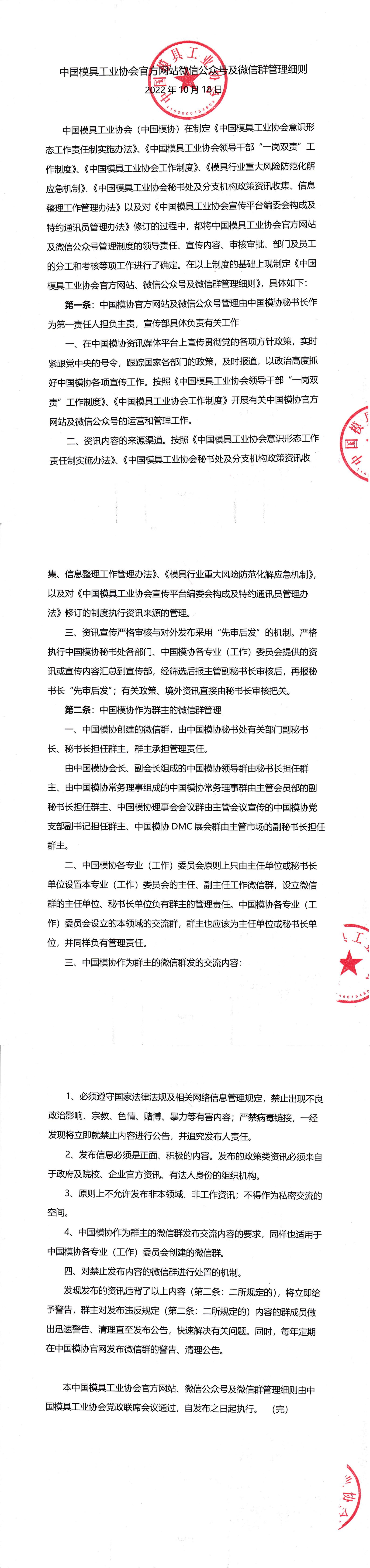 中国模具工业协会官方网站微信公众号及微信群管理细则