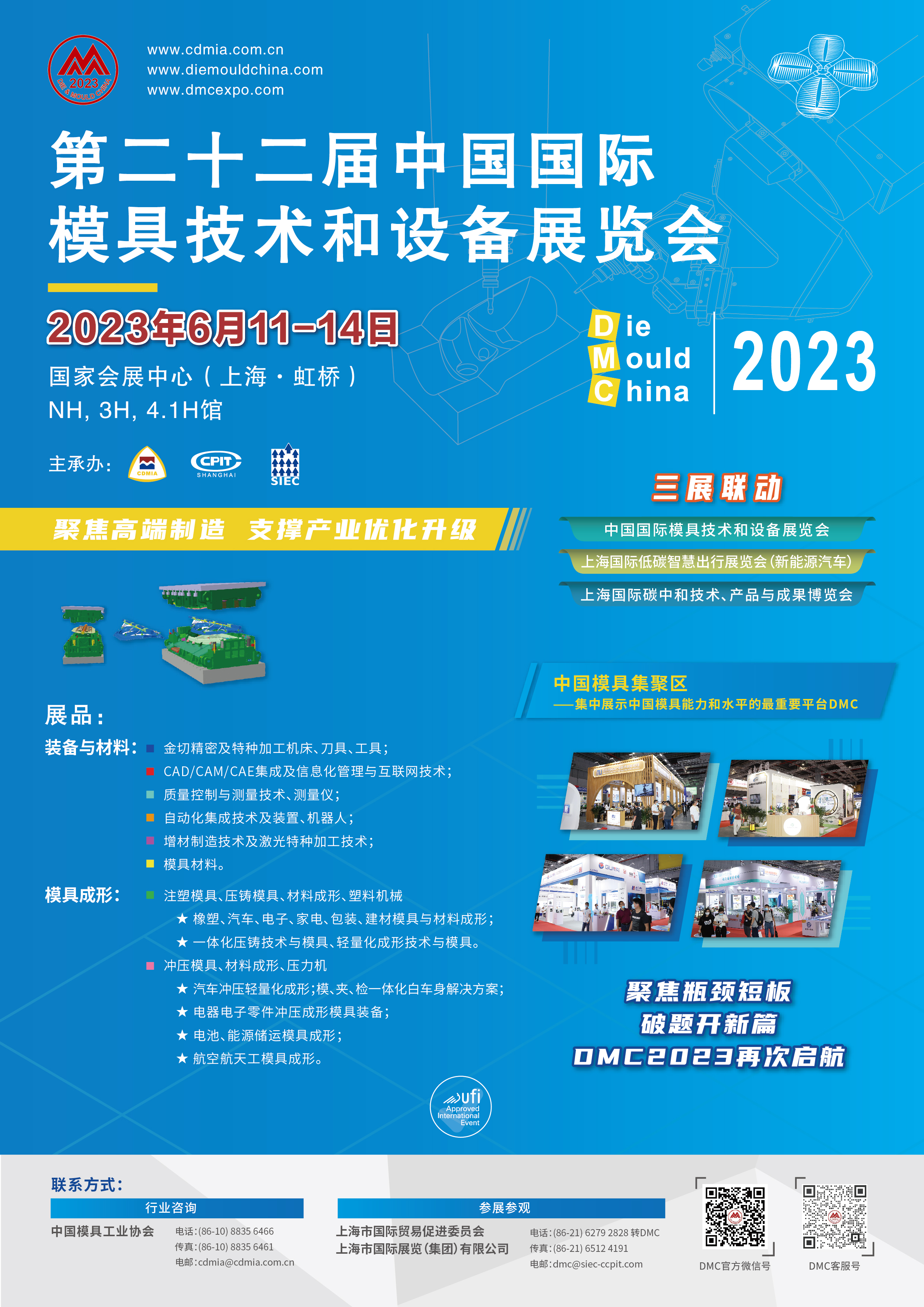 第二十二届中国国际模具技术和设备展览会将于2023年6月11-14日举办
