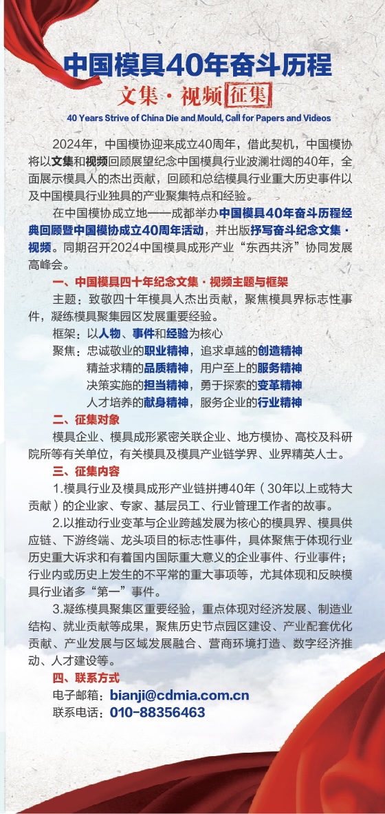 模具行业“十四五”发展纲要? ?100元/本? ? ?联系电话:010-88356463