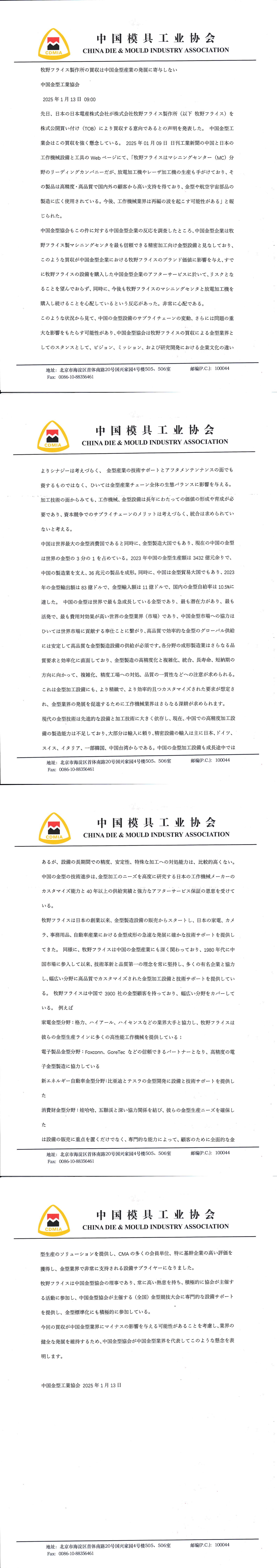 牧野フライ又製作所の買収 は中国金型産業の発 展に寄与 し本い