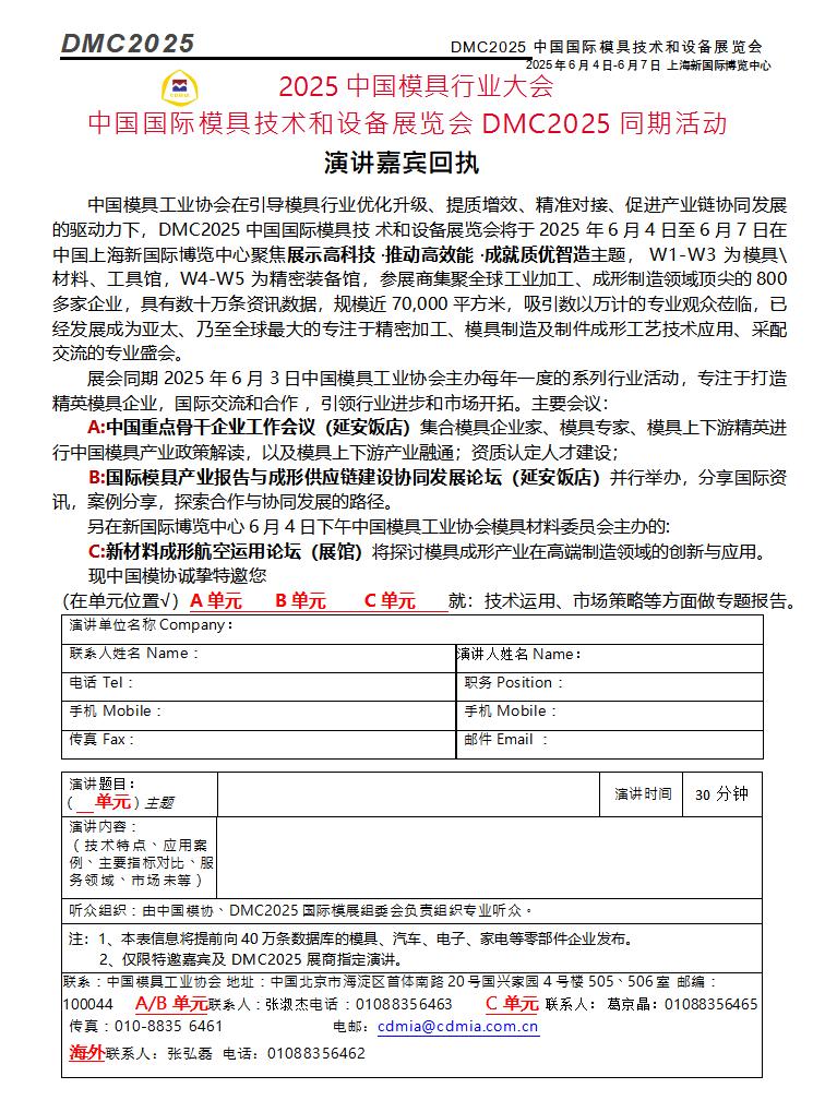 DMC2025会议演讲题目-演讲嘉宾回执表(1).docx